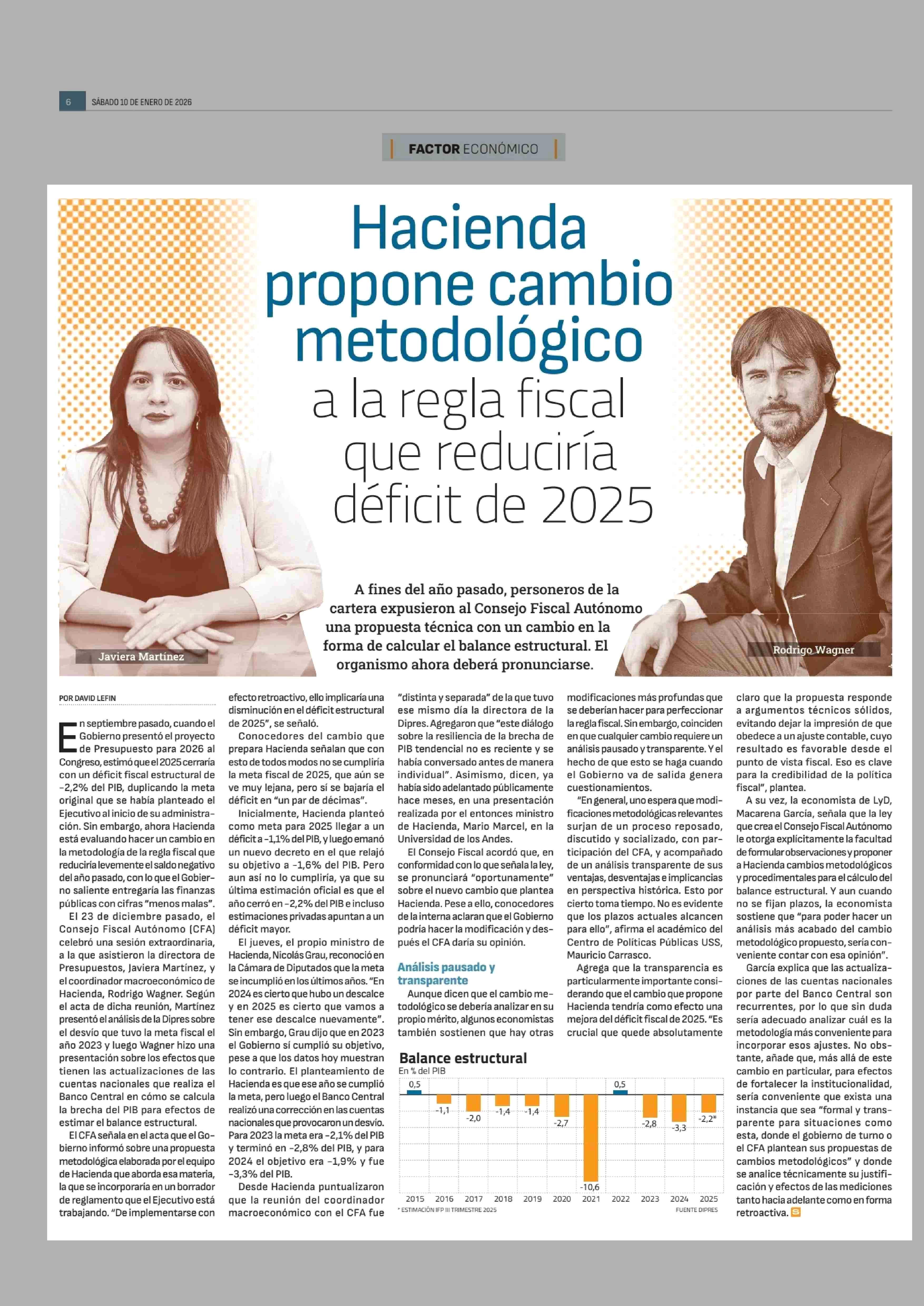 Hacienda propone cambio metodológico a la regla fiscal que reduciría déficit de 2025 10-01-2026 Diario Financiero |
