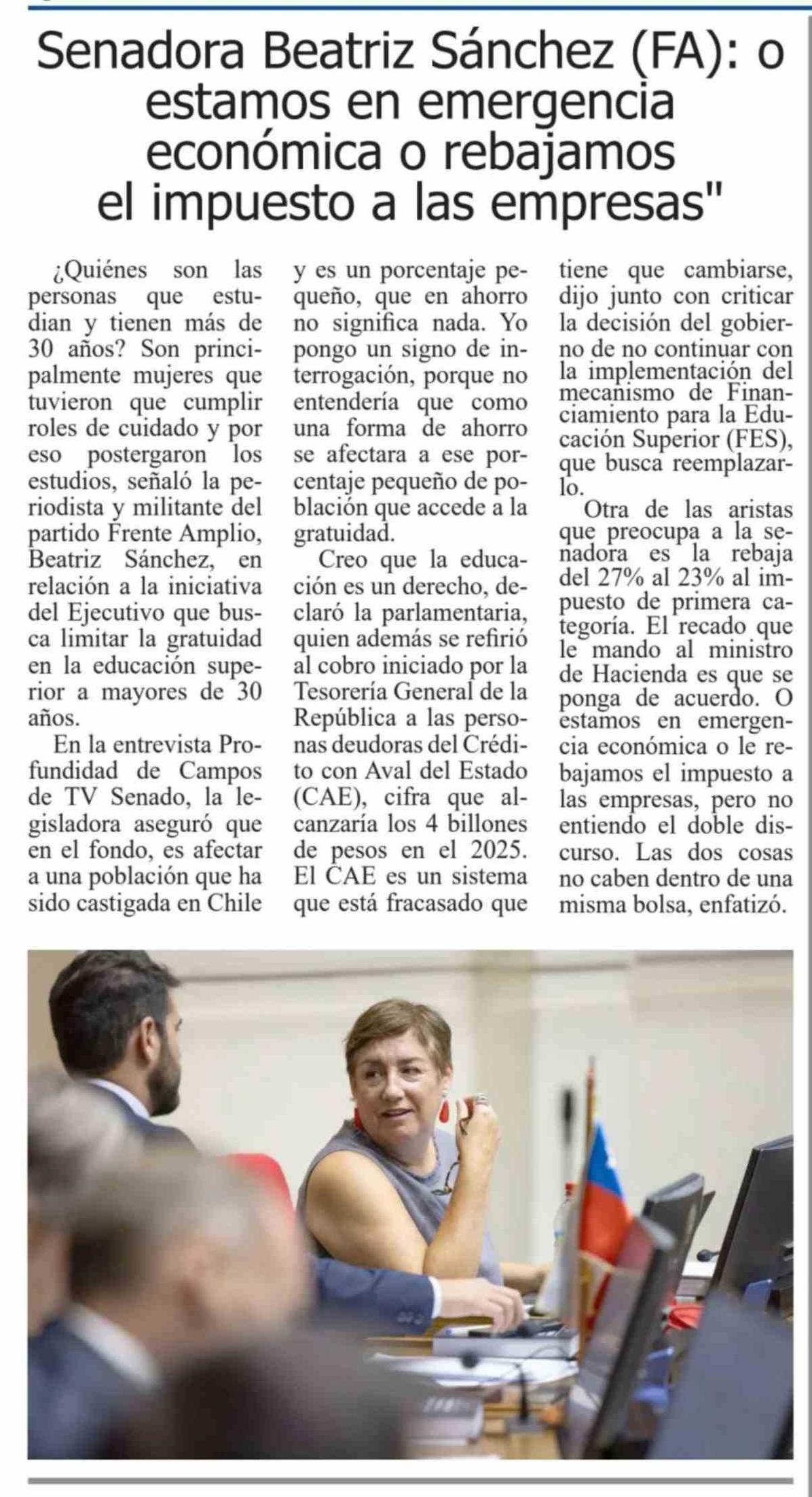 Título: Senadora Beatriz Sánchez (FA): o estamos en emergencia económica o rebajamos el impuesto a las empresas"