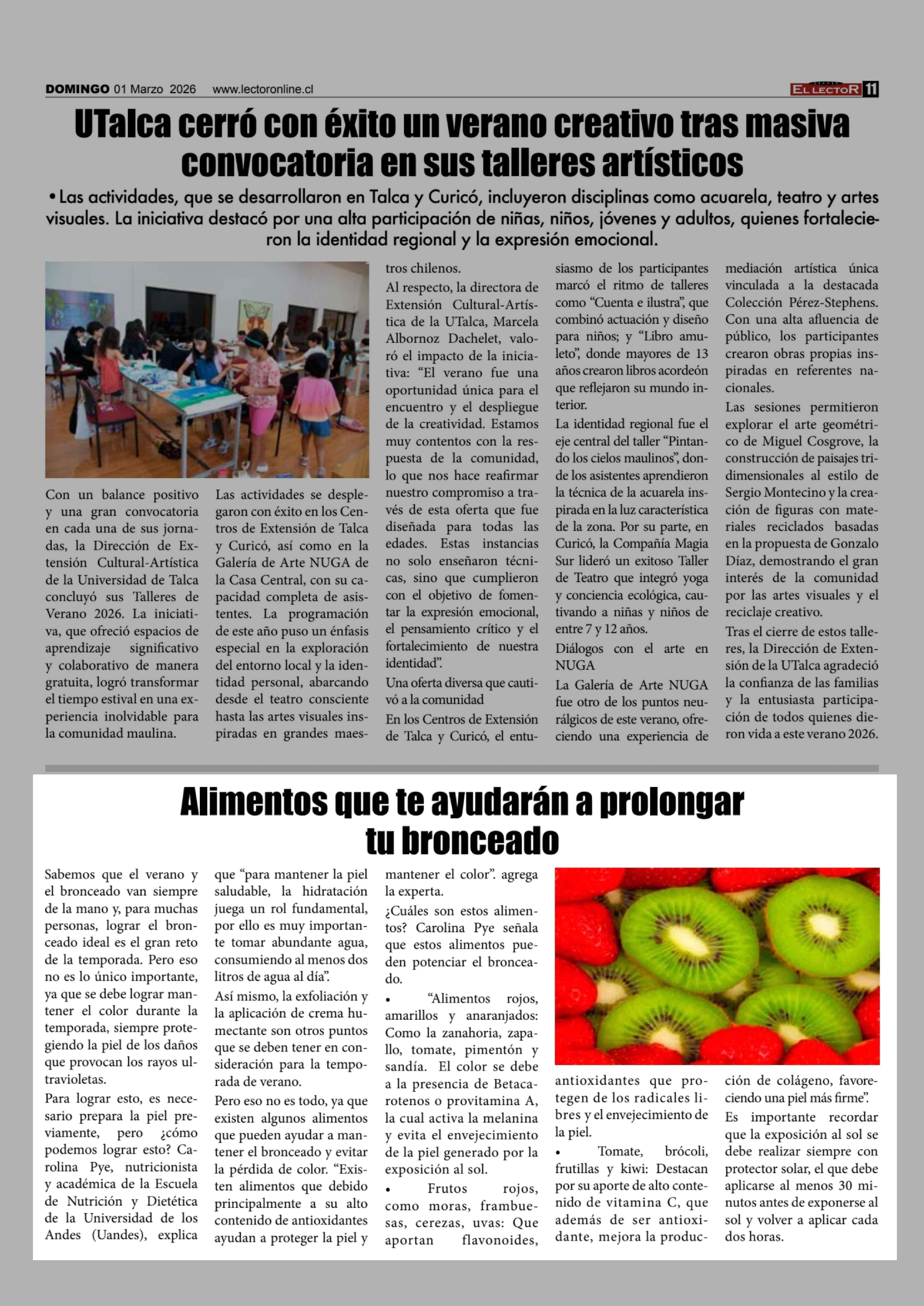 Alimentos que te ayudarán a prolongar tu bronceado 01-03-2026 El Lector |