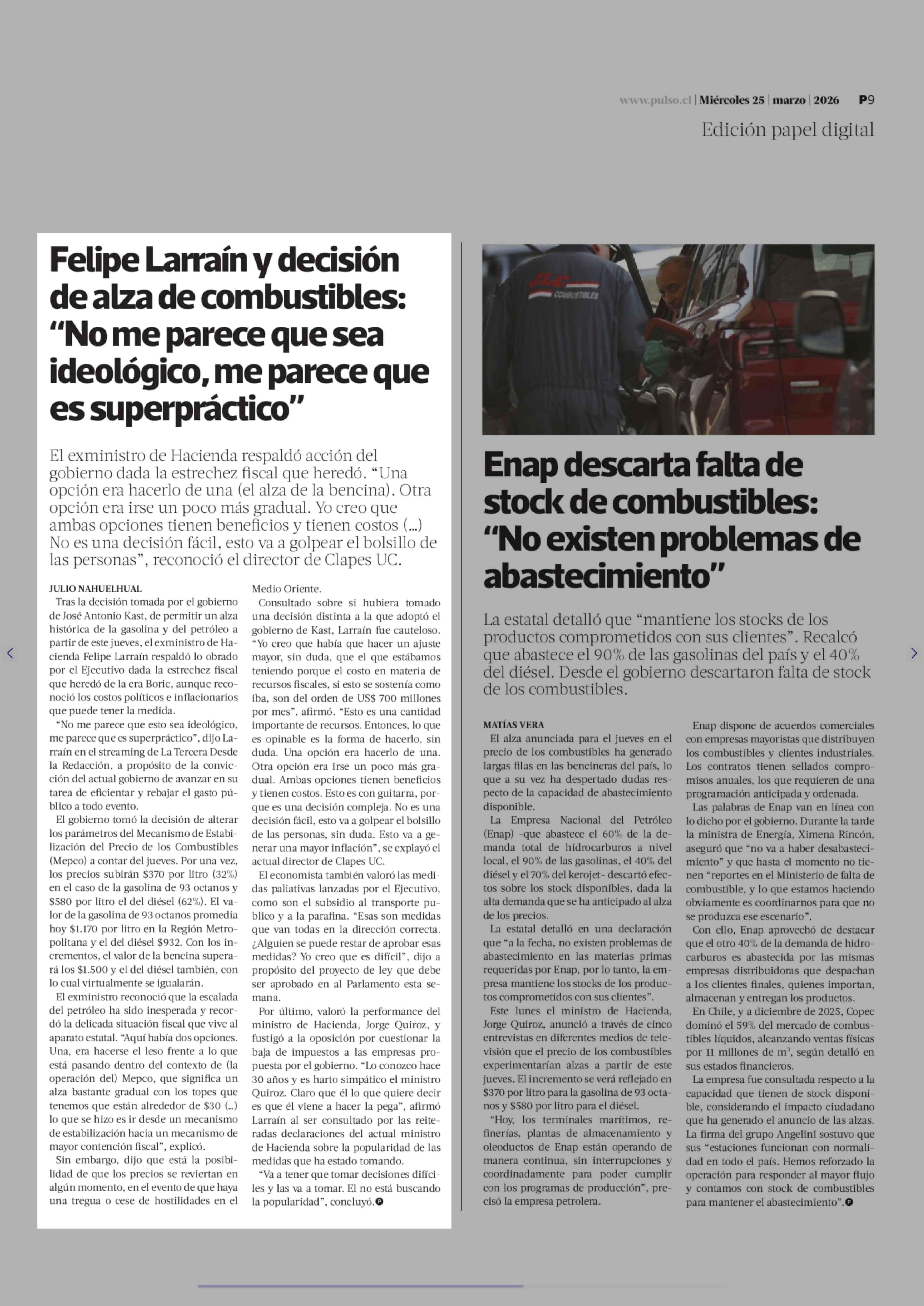 Título: Felipe Larraín y decisión de alza de combustibles: "No me parece que sea ideológico, me parece que es superpráctico"
