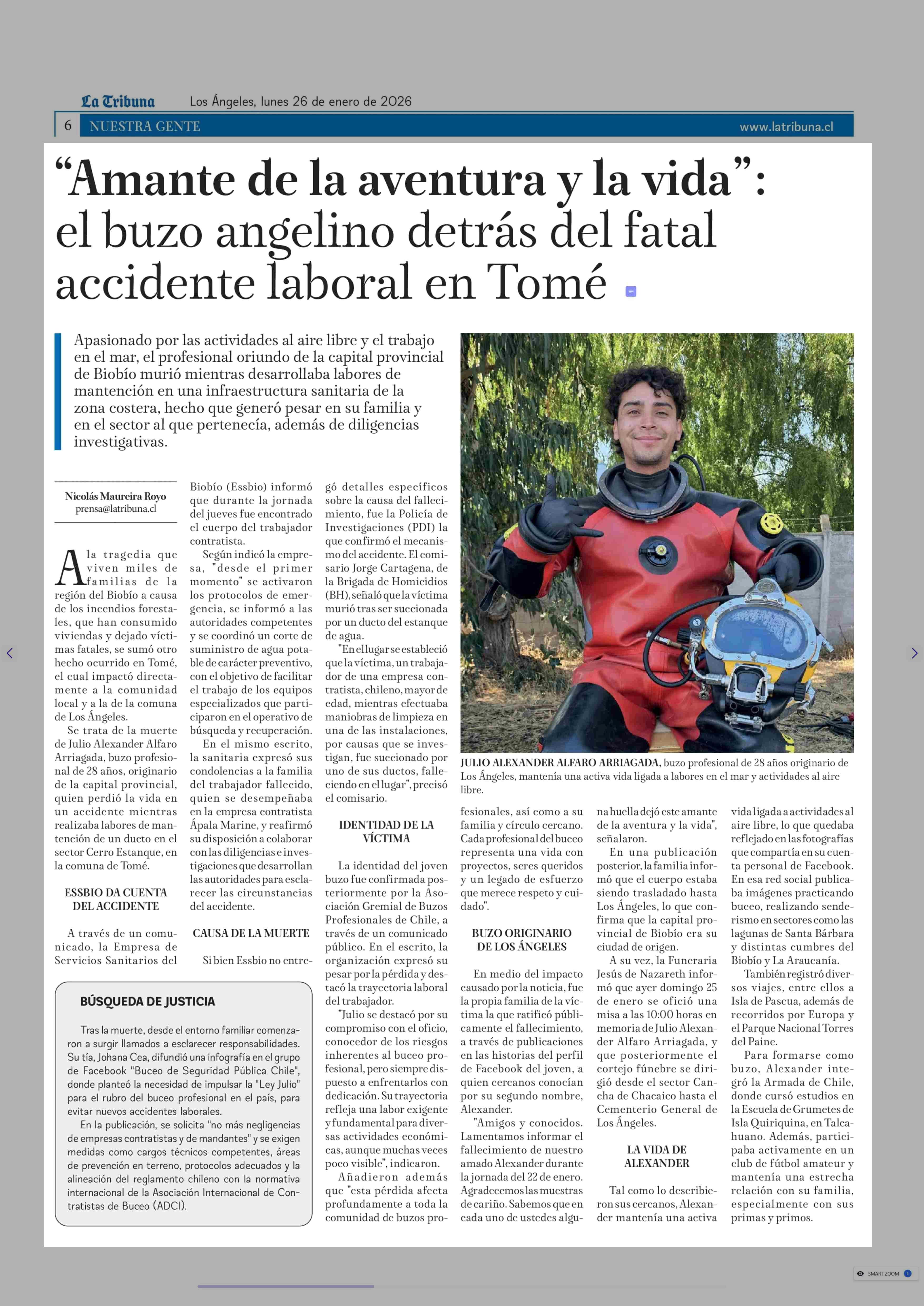 "Amante de la aventura y la vida": el buzo angelino detrás del fatal accidente laboral en Tomé 26-01-2026 La Tribuna |