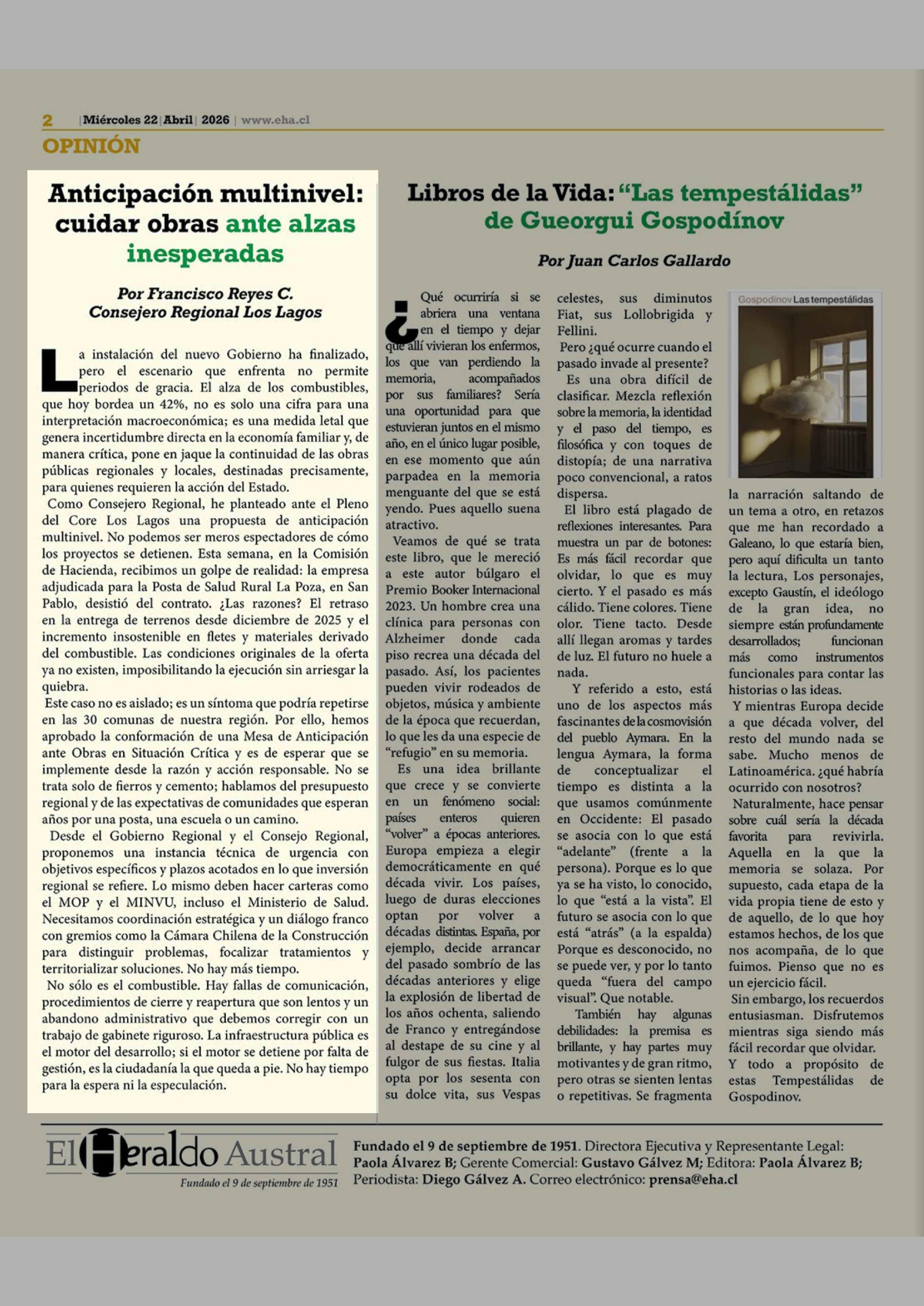 Fecha: 22-04-2026 Sector: Columnas de Opinión Región: Región de Los Lagos
