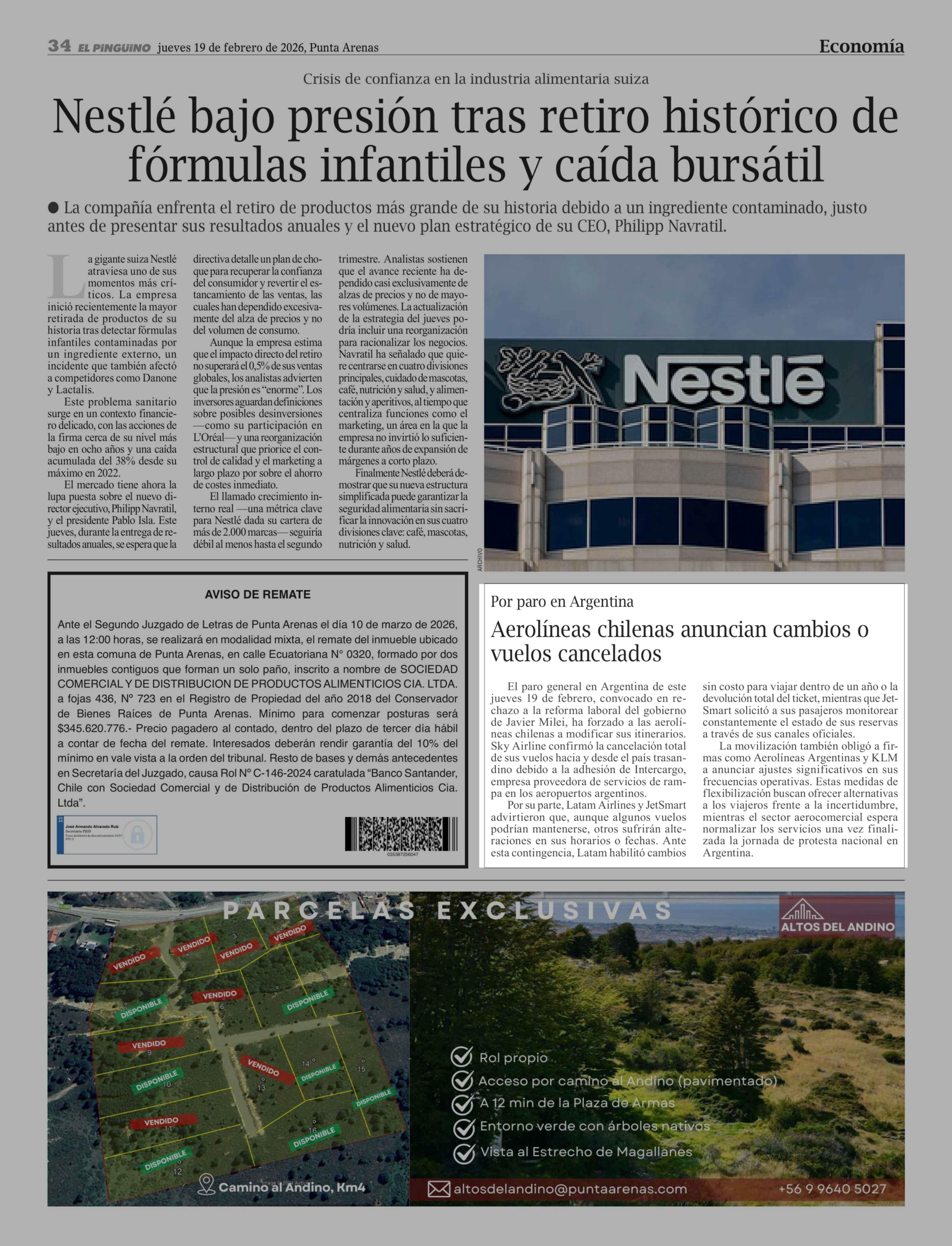 Aerolíneas chilenas anuncian cambios o vuelos cancelados 19-02-2026 El Pingüino |