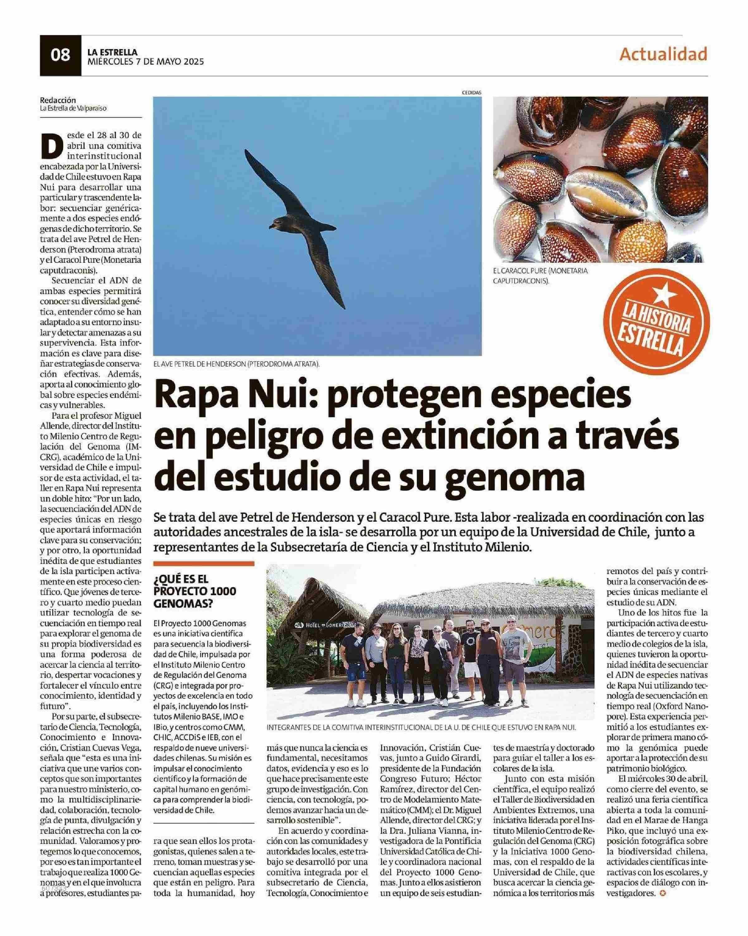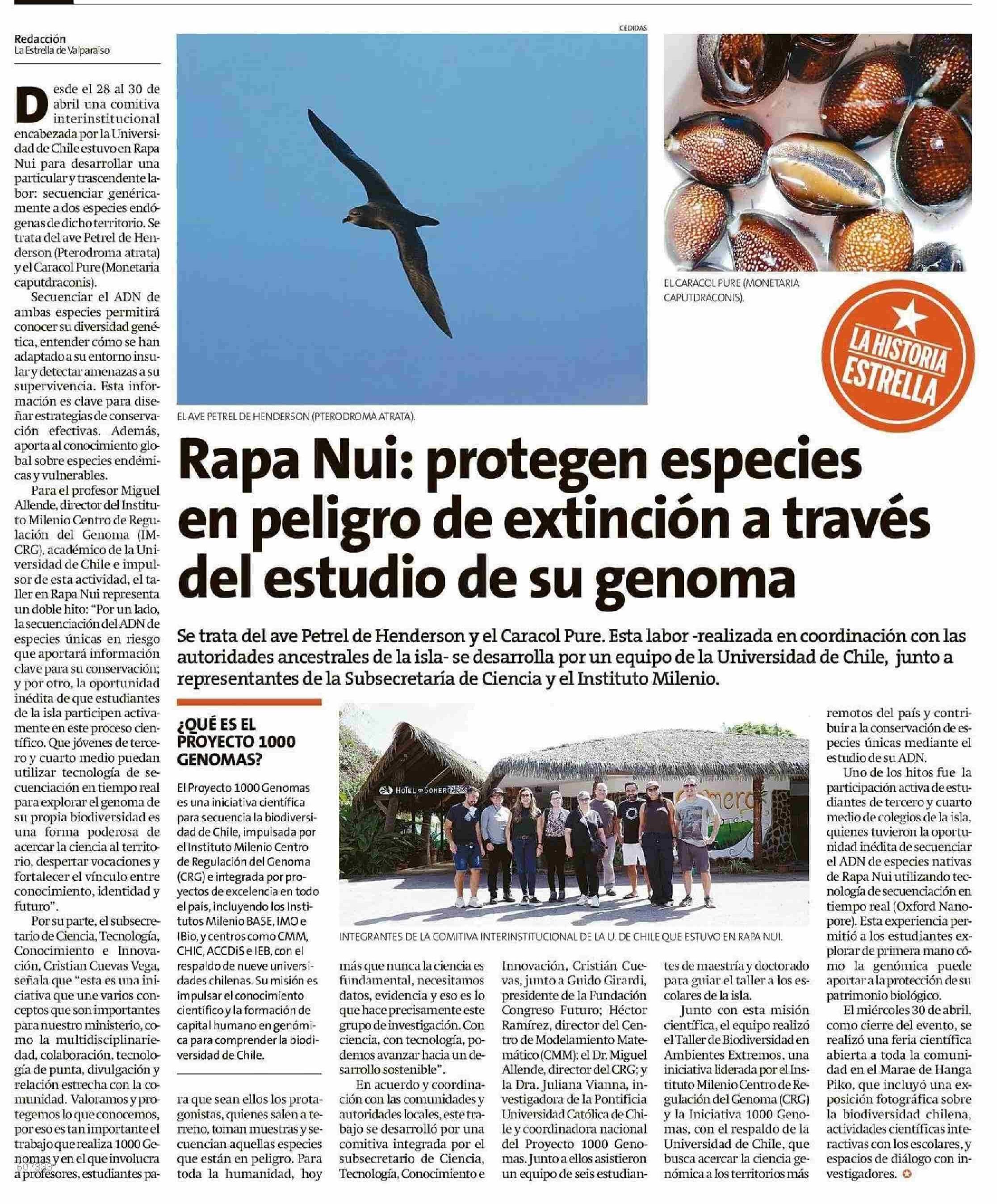 Rapa Nui: protegen especies en peligro de extinción a través del estudio de su genoma 07-05-2025 La Estrella de Valparaíso |