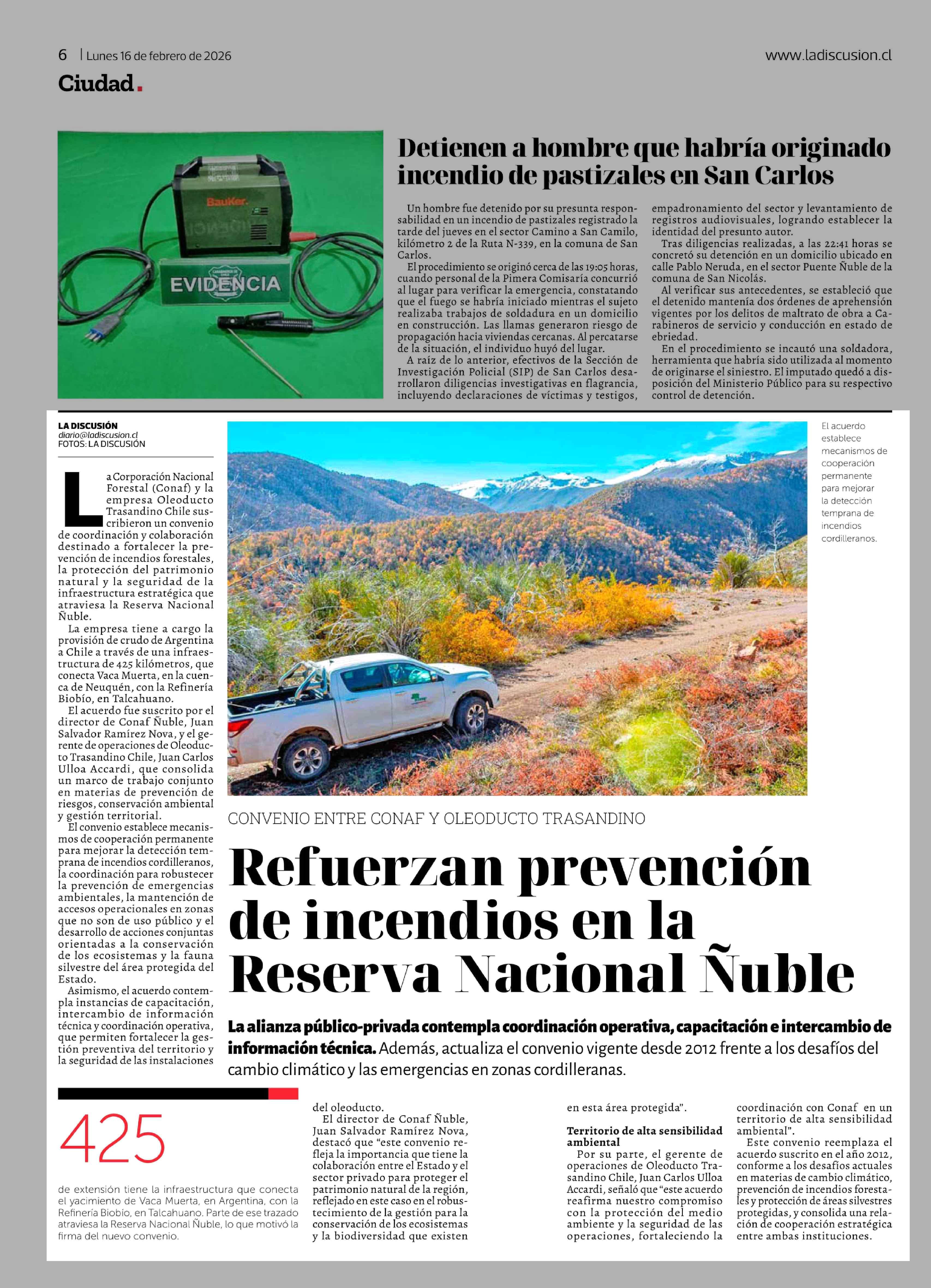 Refuerzan prevención de incendios en la Reserva Nacional Nuble 16-02-2026 La Discusión |
