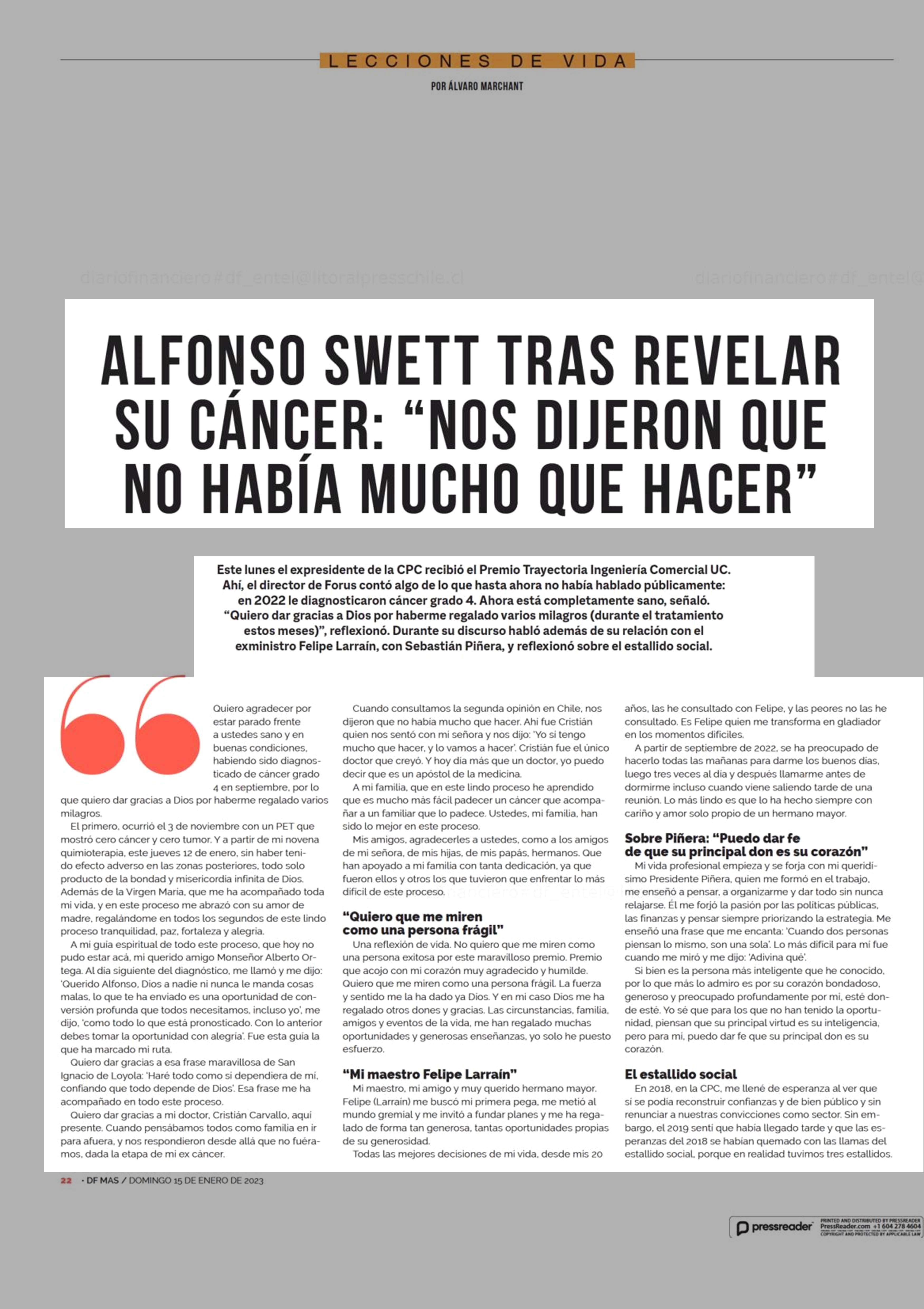 Título: ALFONSO SWETT TRAS REVELAR SU CANCER: “NOS DIJERON QUE NO HABIA MUCHO QUE HACER”