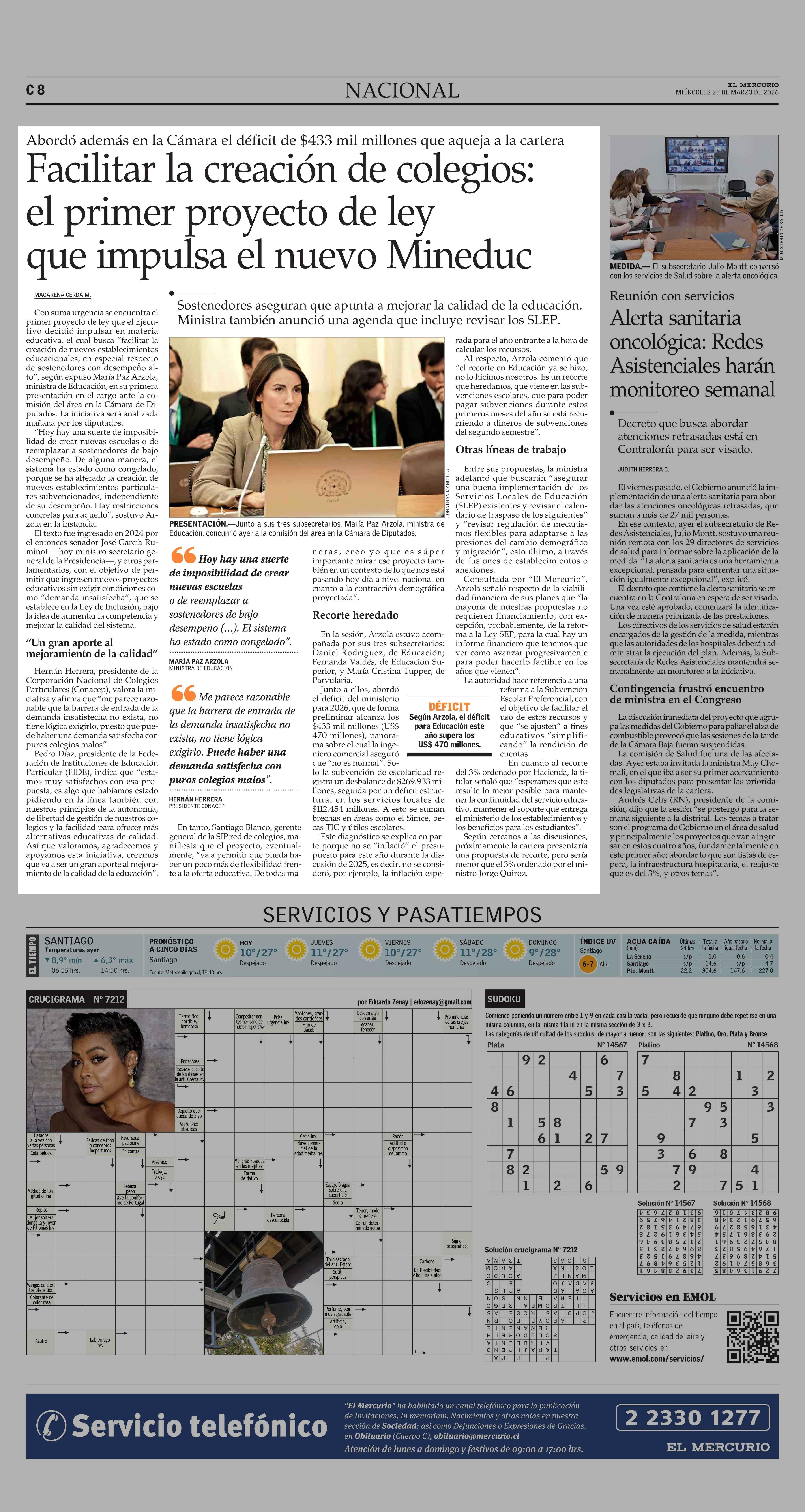 Facilitar la creación de colegios: el primer proyecto de ley que impulsa el nuevo Mineduc 25-03-2026 El Mercurio |