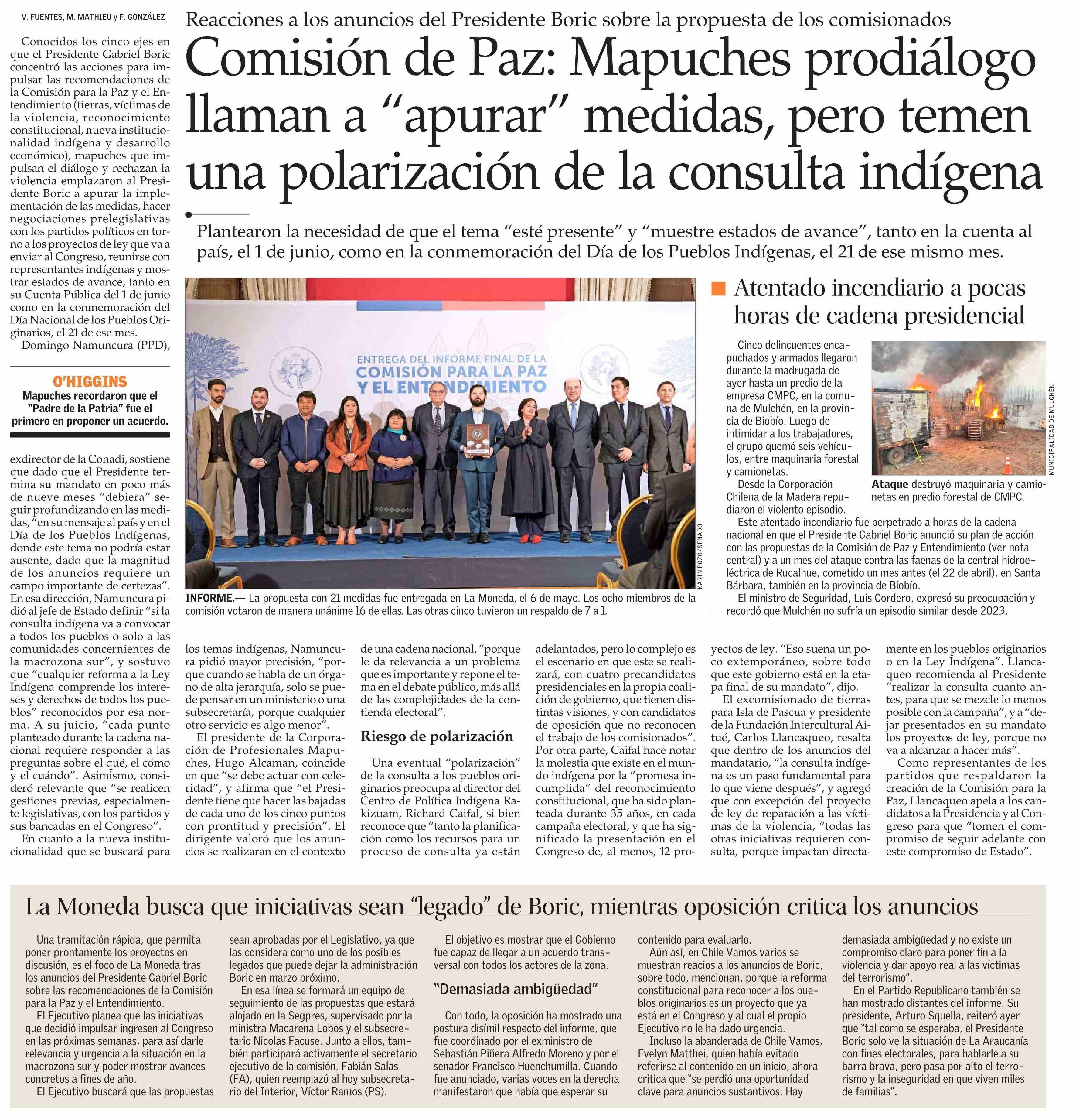 Comisión de Paz: Mapuches prodiálogo llaman a “apurar” medidas, pero temen una polarización de la consulta indígena 24-05-2025 El Mercurio |