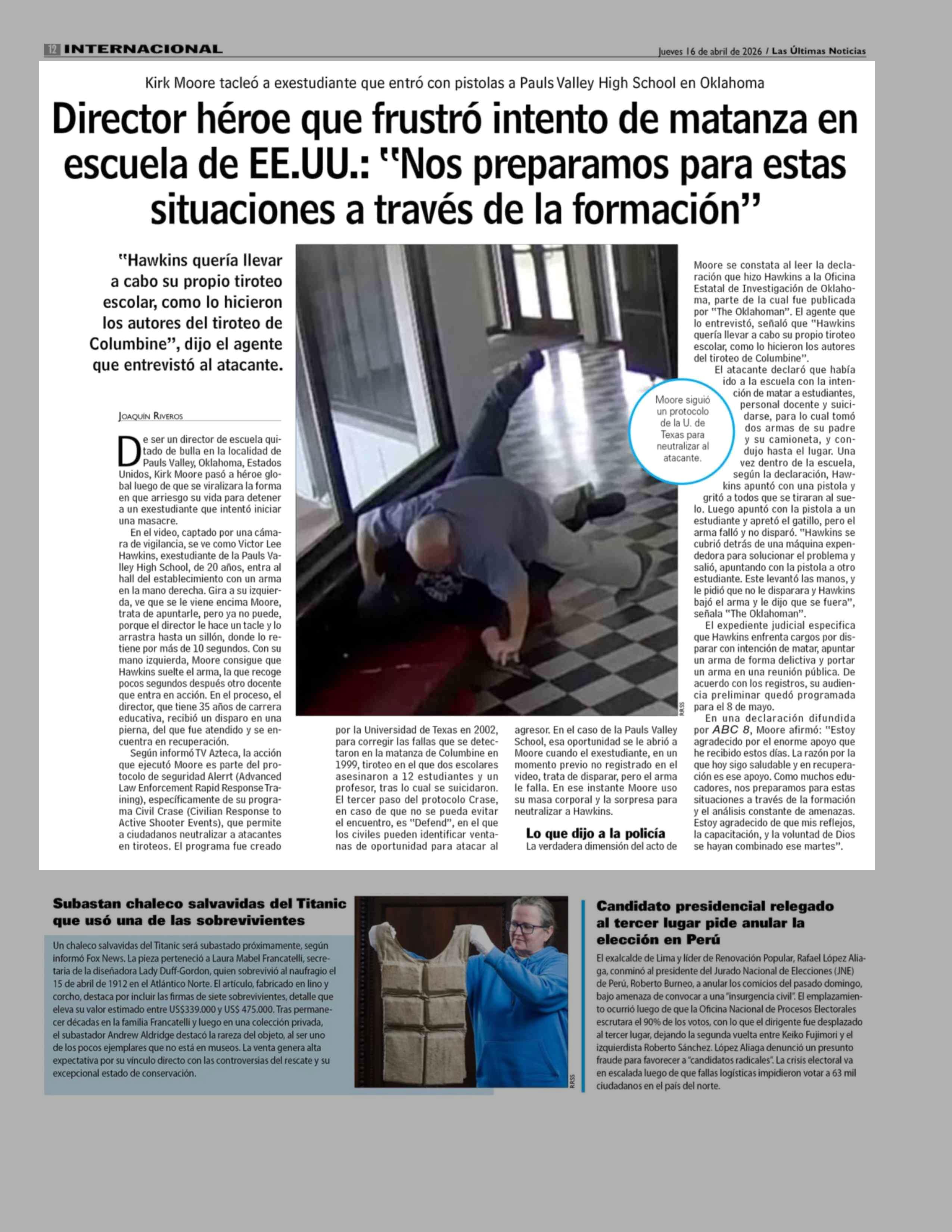 Título: Director héroe que frustro intento de matanza en escuela de EE.UU .: "Nos preparamos para estas situaciones a través de la formación"