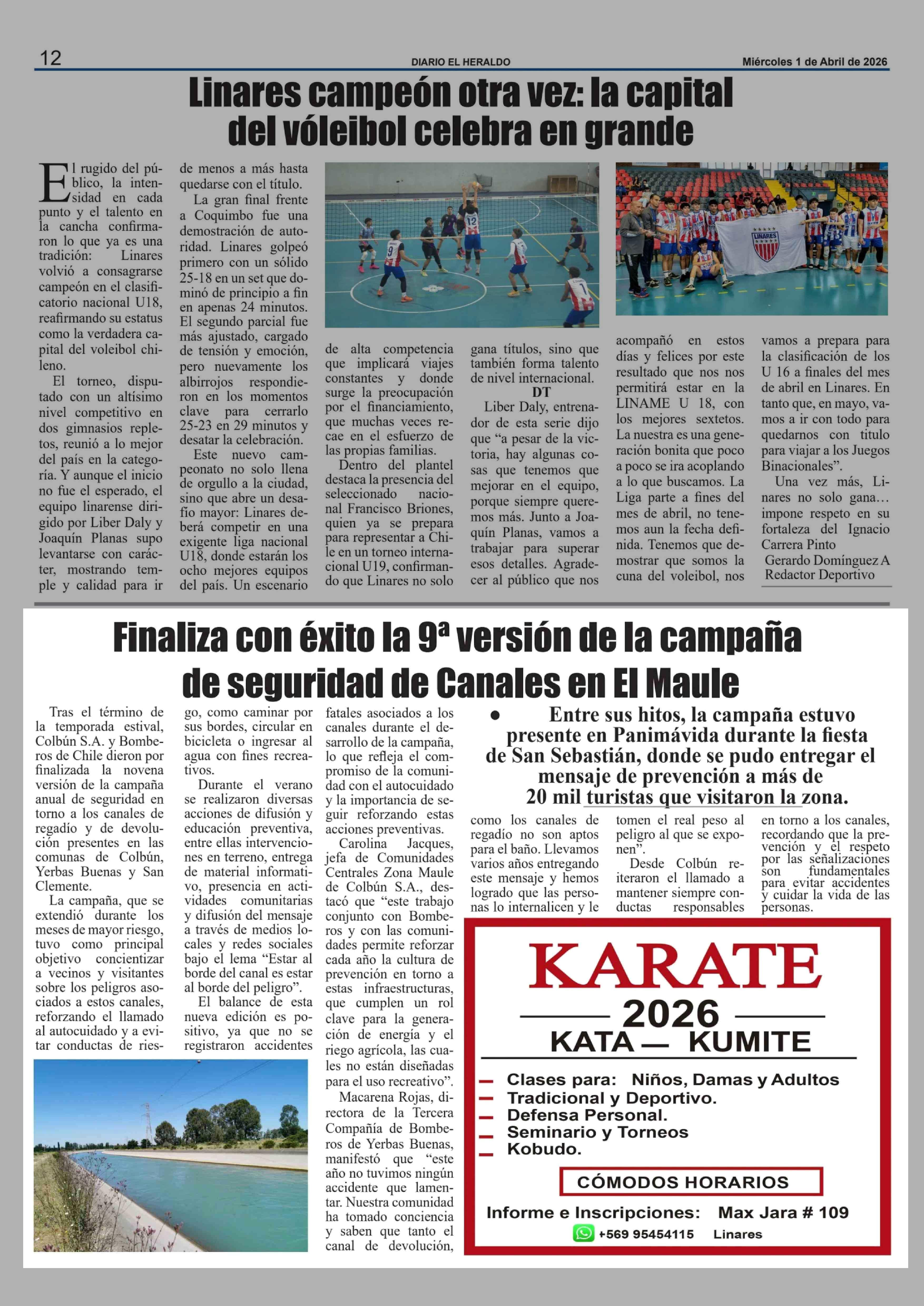 Finaliza con éxito la 9ª versión de la campaña de seguridad de Canales en El Maule 01-04-2026 El Heraldo |