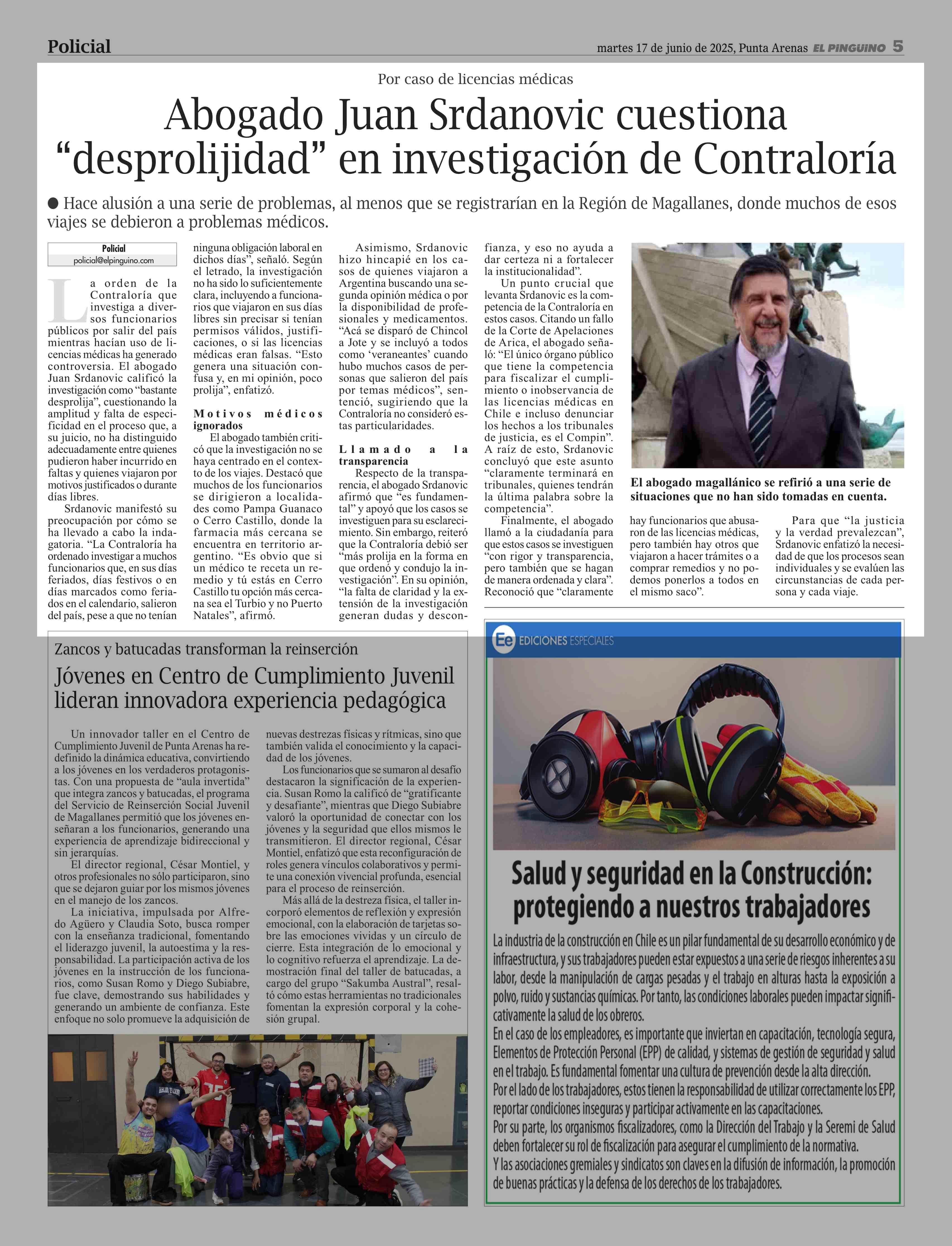 Abogado Juan Srdanovic cuestiona “desprolijidad” en investigación de Contraloría 17-06-2025 El Pingüino |