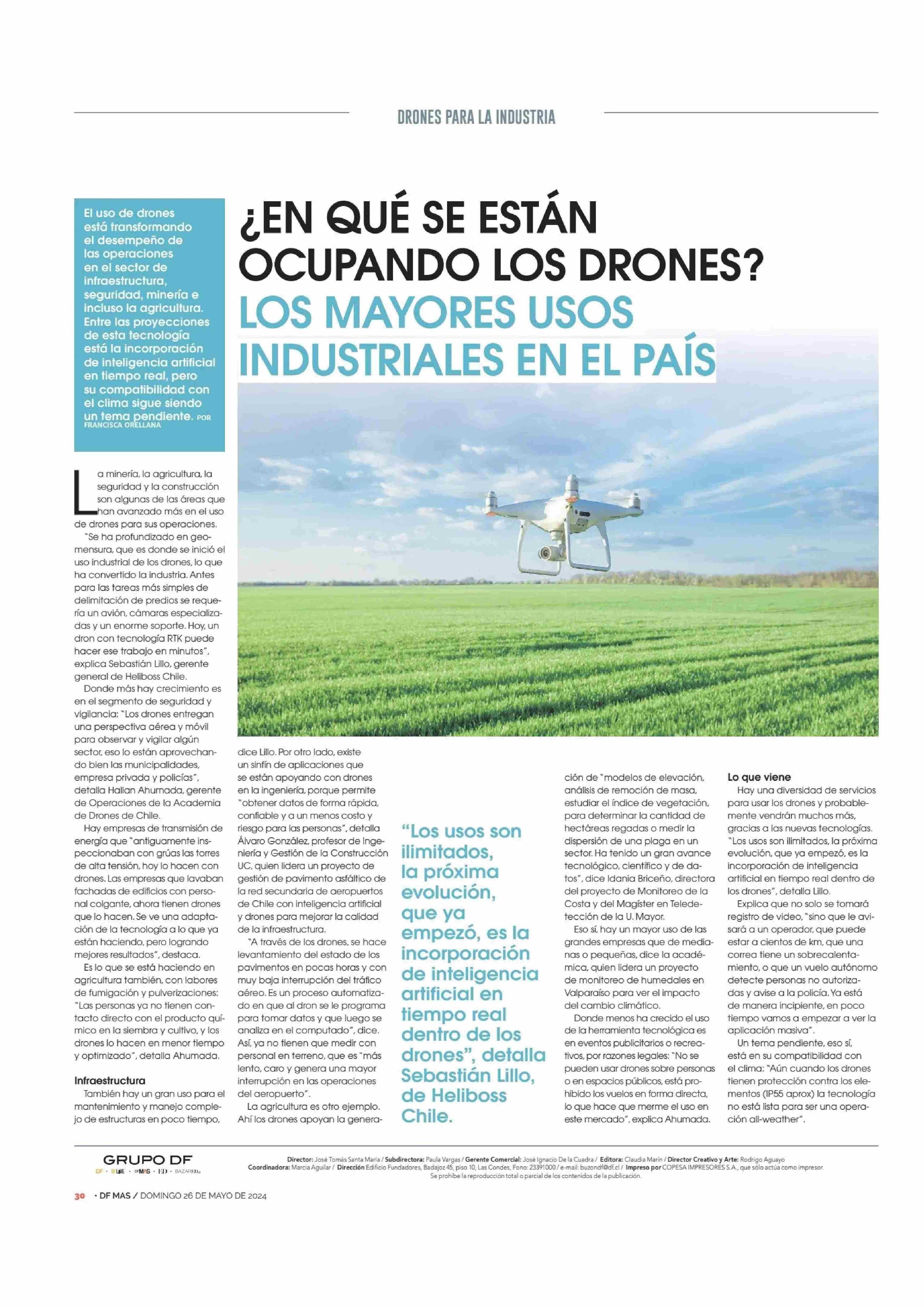 ¿EN QUÉ SE ESTÁN OCUPANDO LOS DRONES? LOS MAYORES USOS INDUSTRIALES EN EL PAÍS 26-05-2024 Diario Financiero |