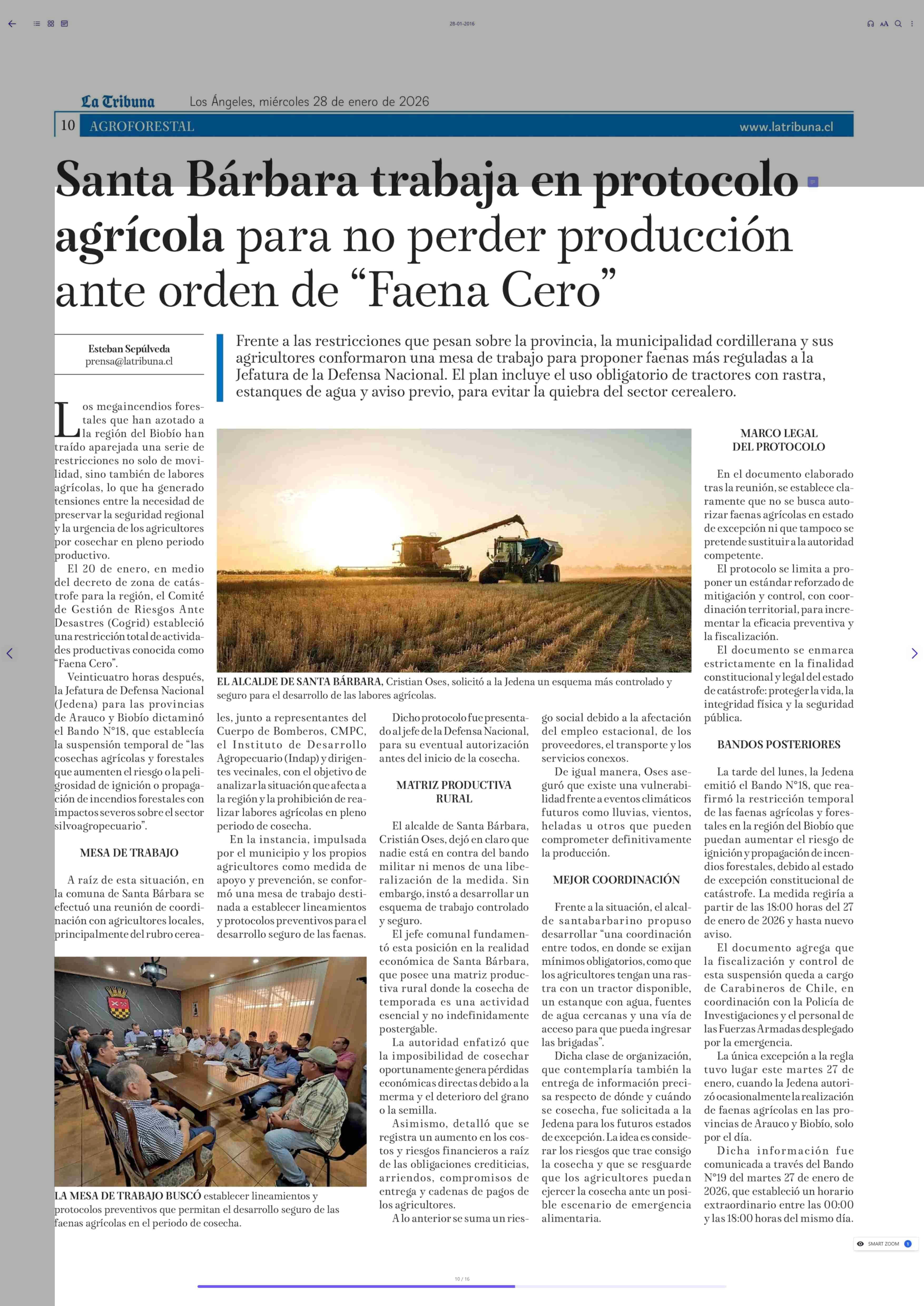 | Título: | Santa Bárbara trabaja en protocolo agrícola para no perder producción ante orden de "Faena Cero" |