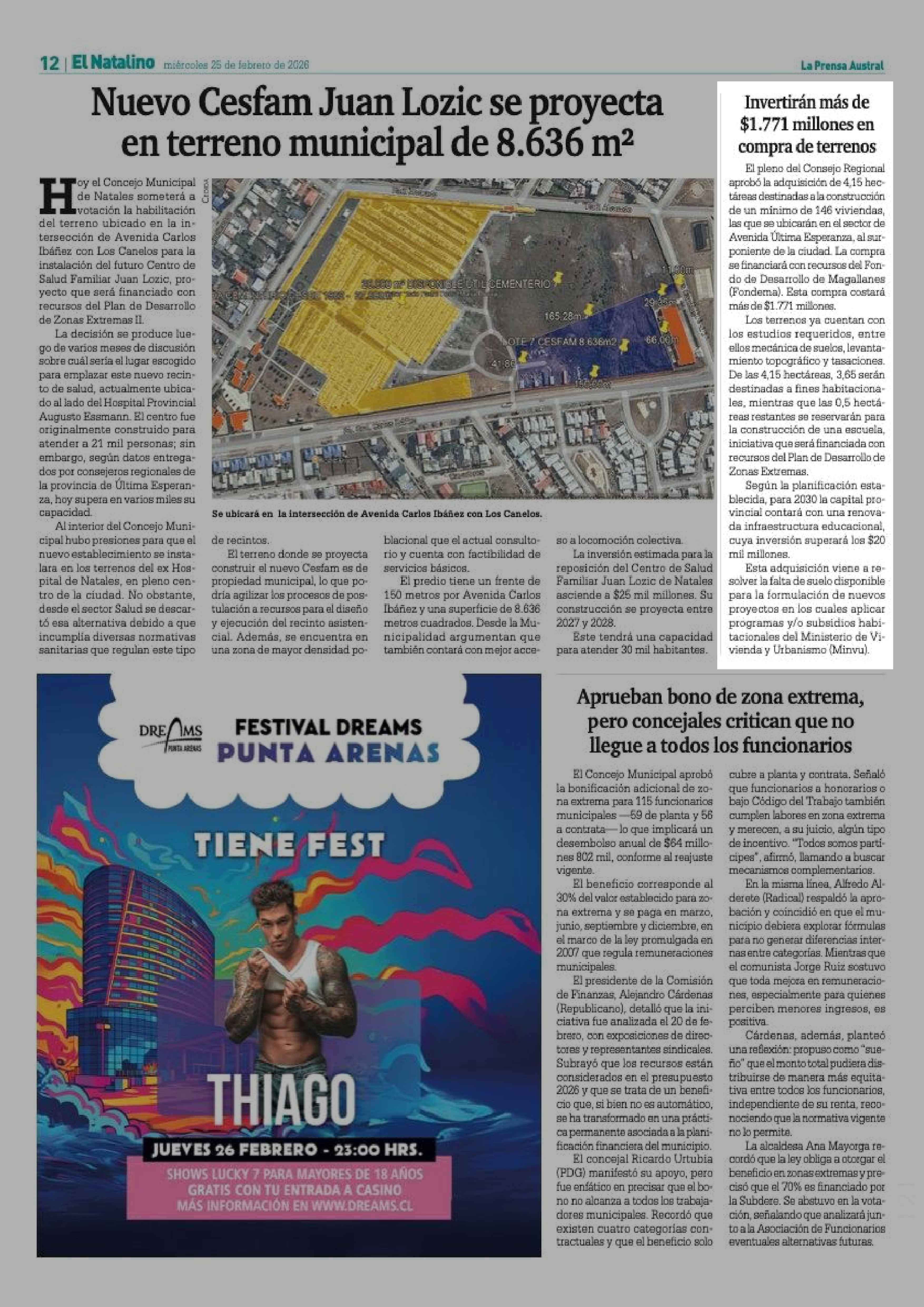 Invertirán más de $1.771 millones en compra de terrenos 25-02-2026 La Prensa Austral |