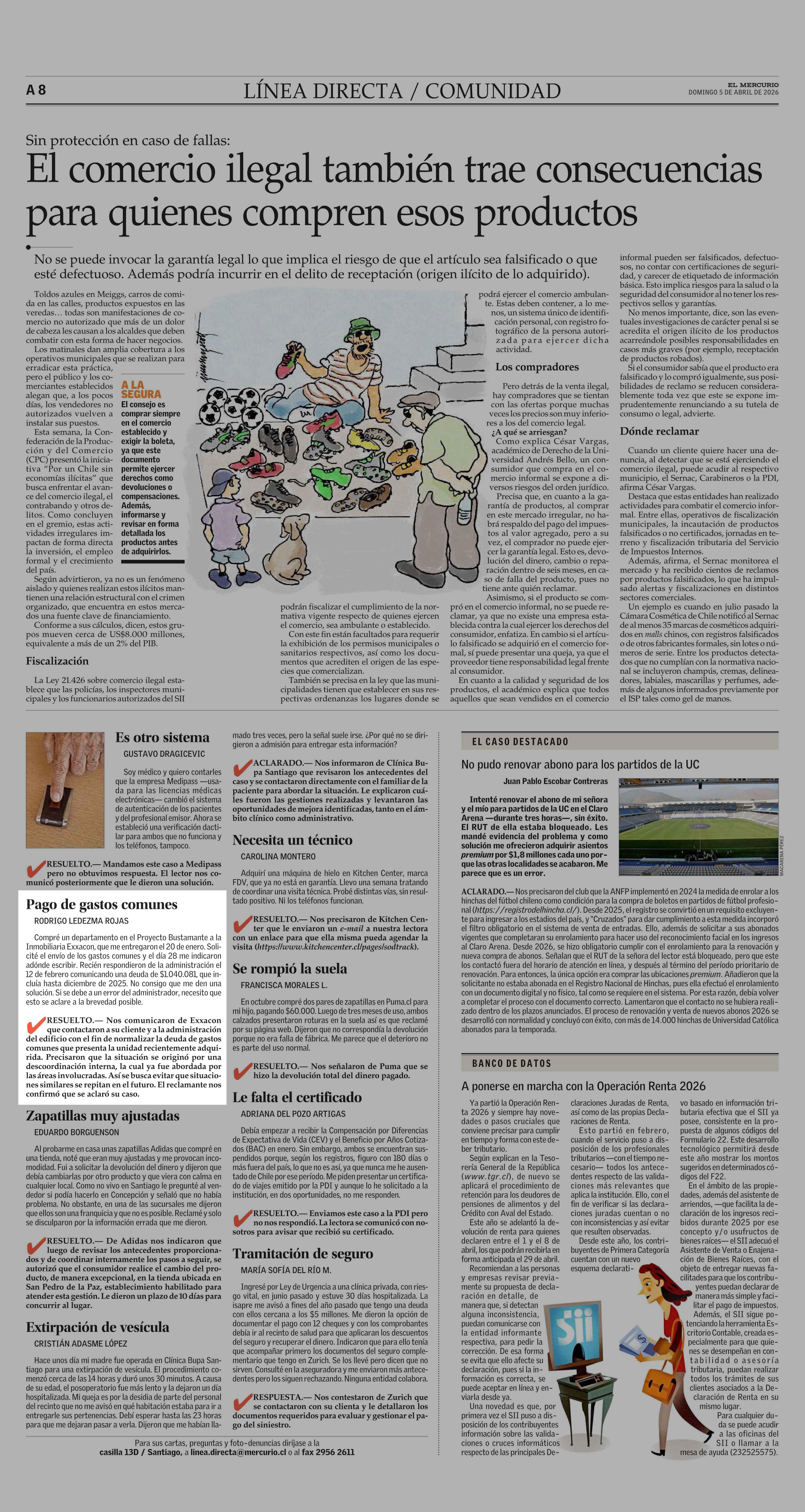 Pago de gastos comunes 05-04-2026 El Mercurio |