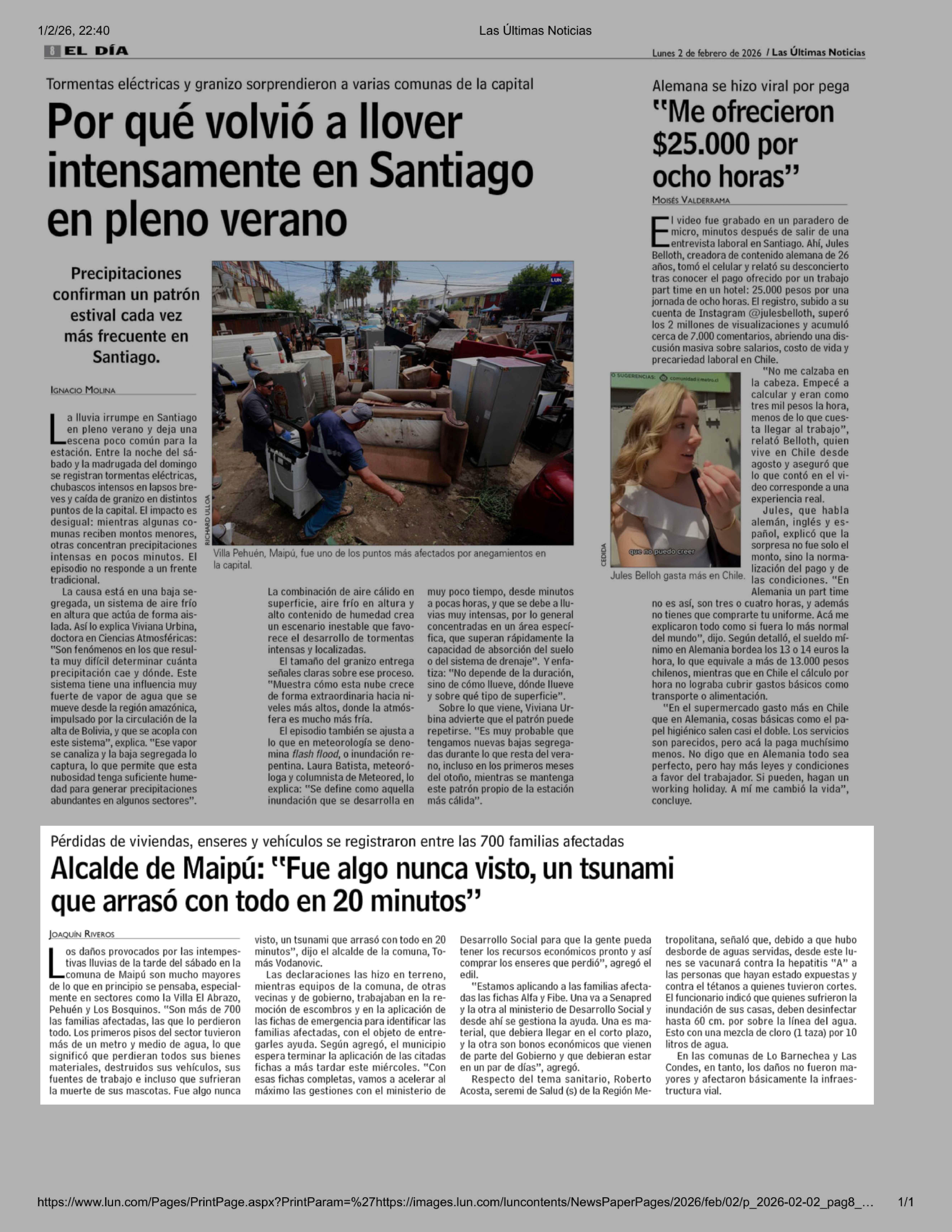 Alcalde de Maipú: "Fue algo nunca visto, un tsunami que arraso con todo en 20 minutos" 02-02-2026 Las Últimas Noticias |