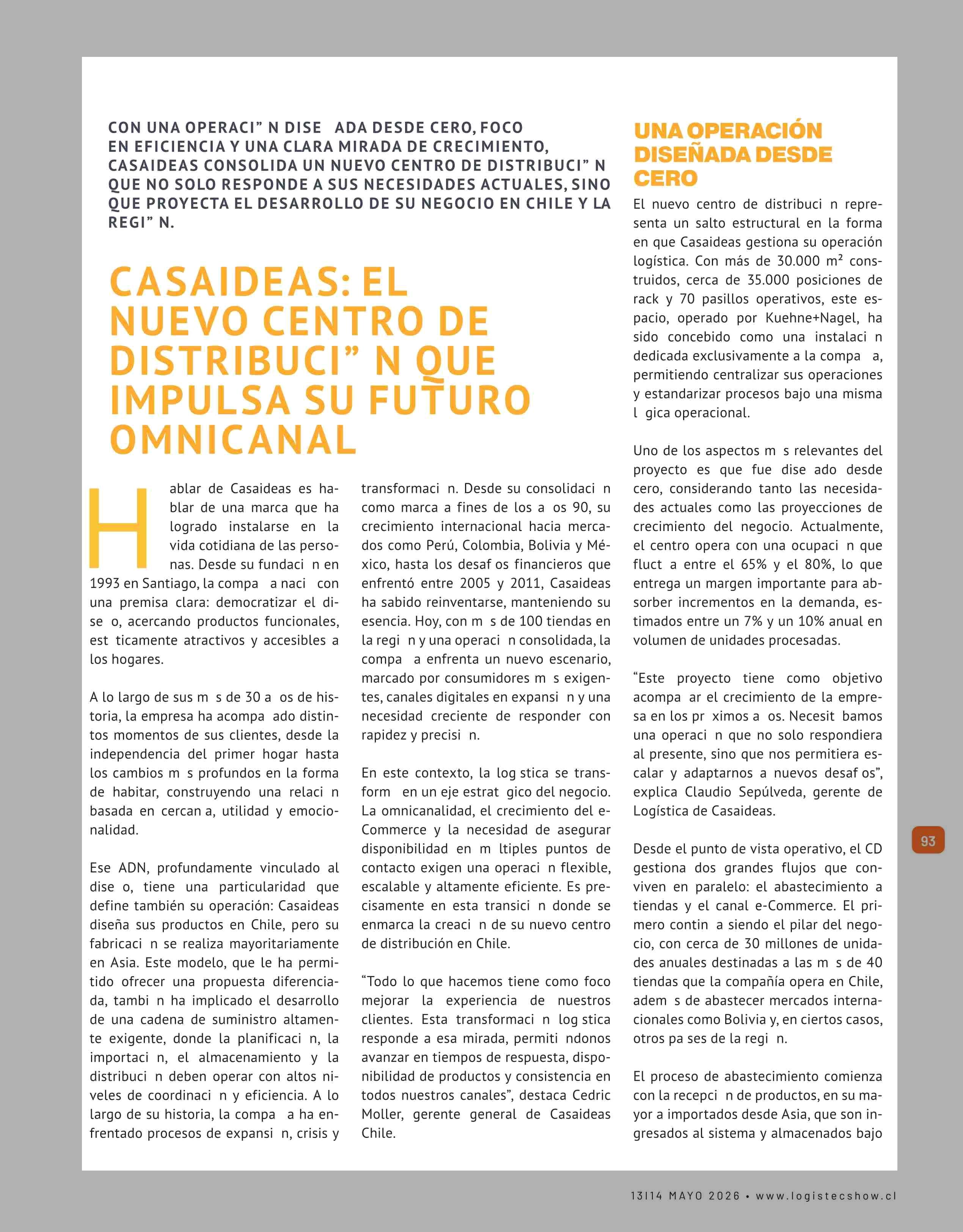 CASAIDEAS: EL NUEVO CENTRO DE DISTRIBUCIÓN QUE IMPULSA SU FUTURO OMNICANAL 23-04-2026 Revista Logistec |