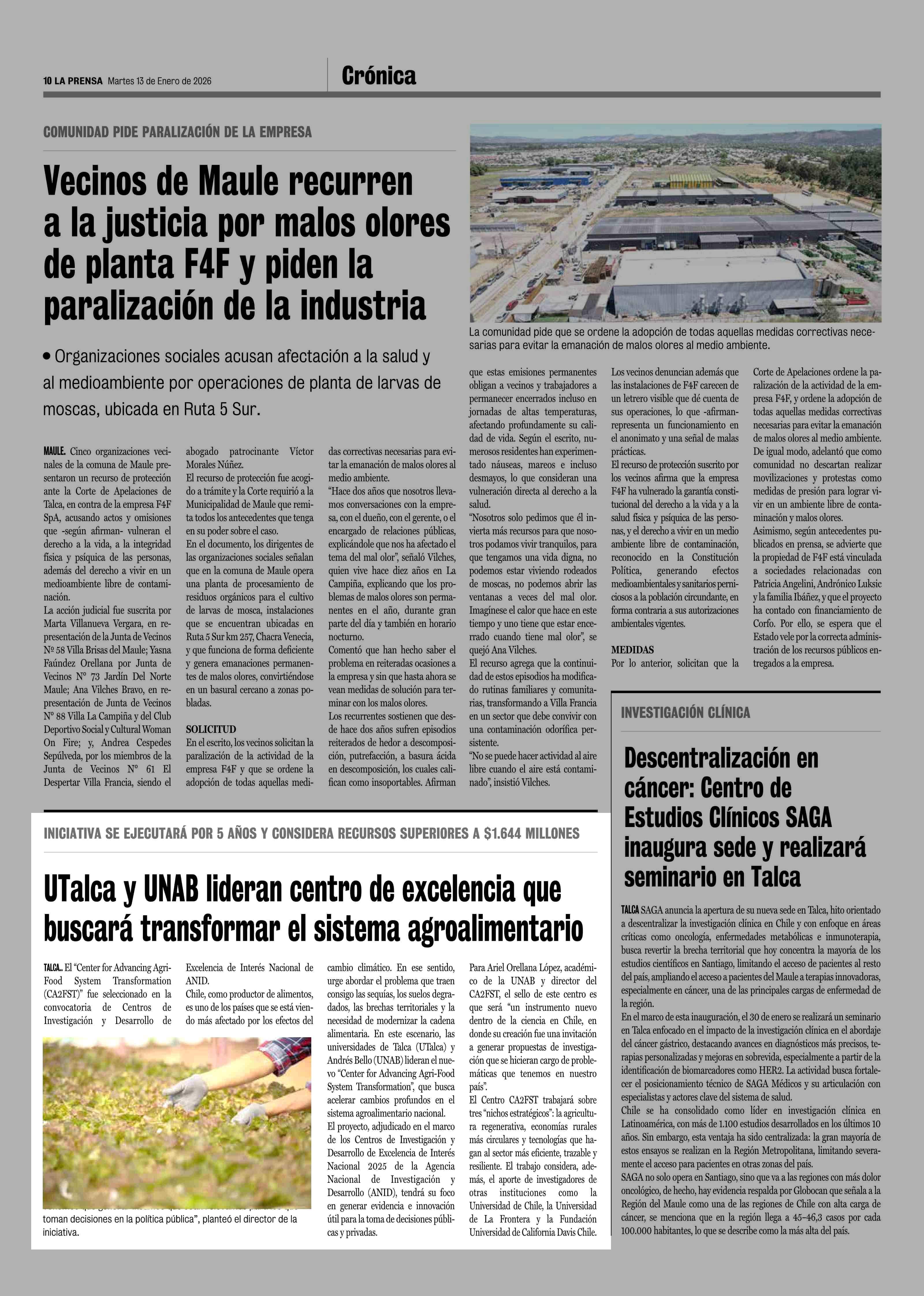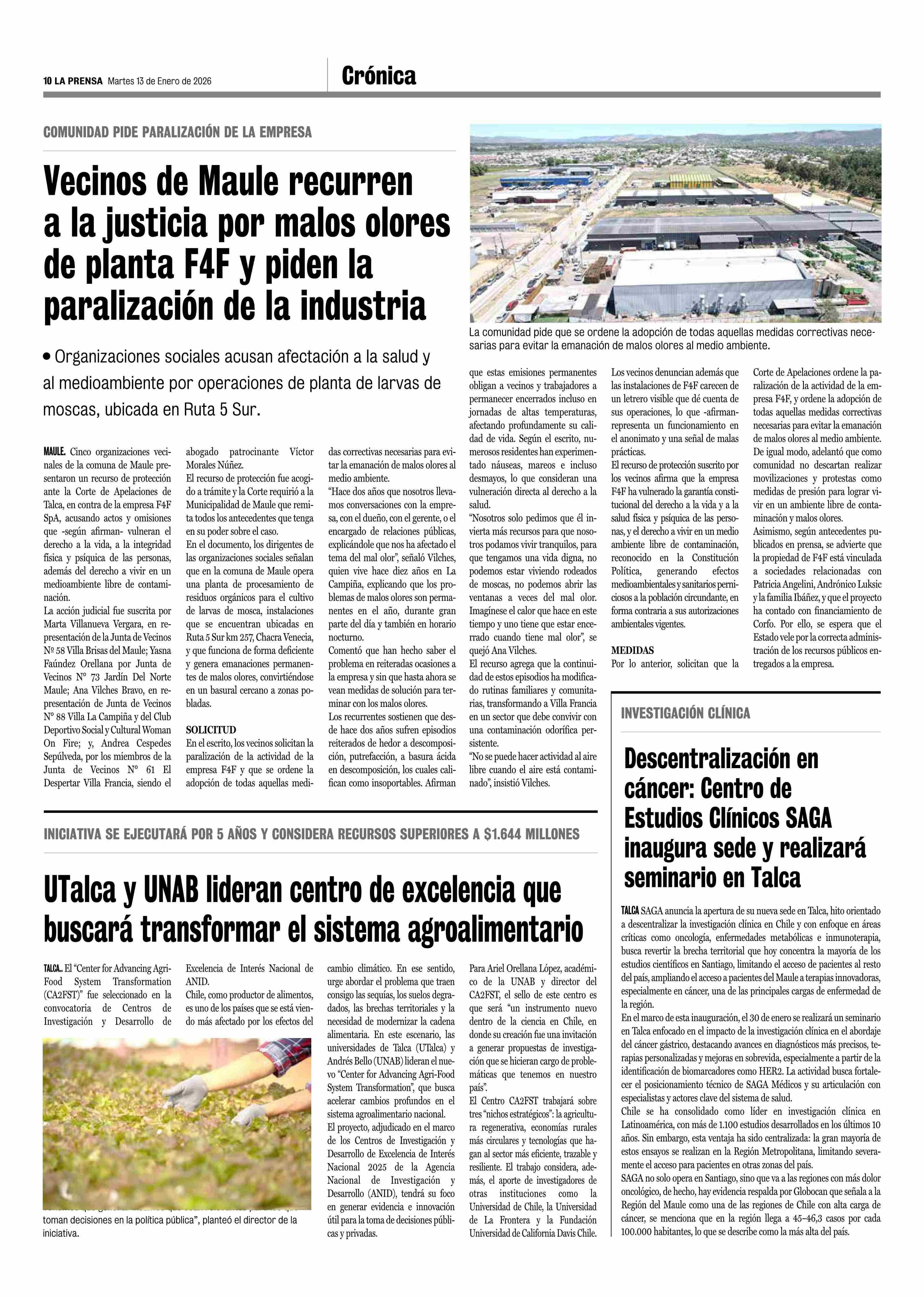 UTalca y UNAB lideran centro de excelencia que buscará transformar el sistema agroalimentario 13-01-2026 La Prensa de Curicó |