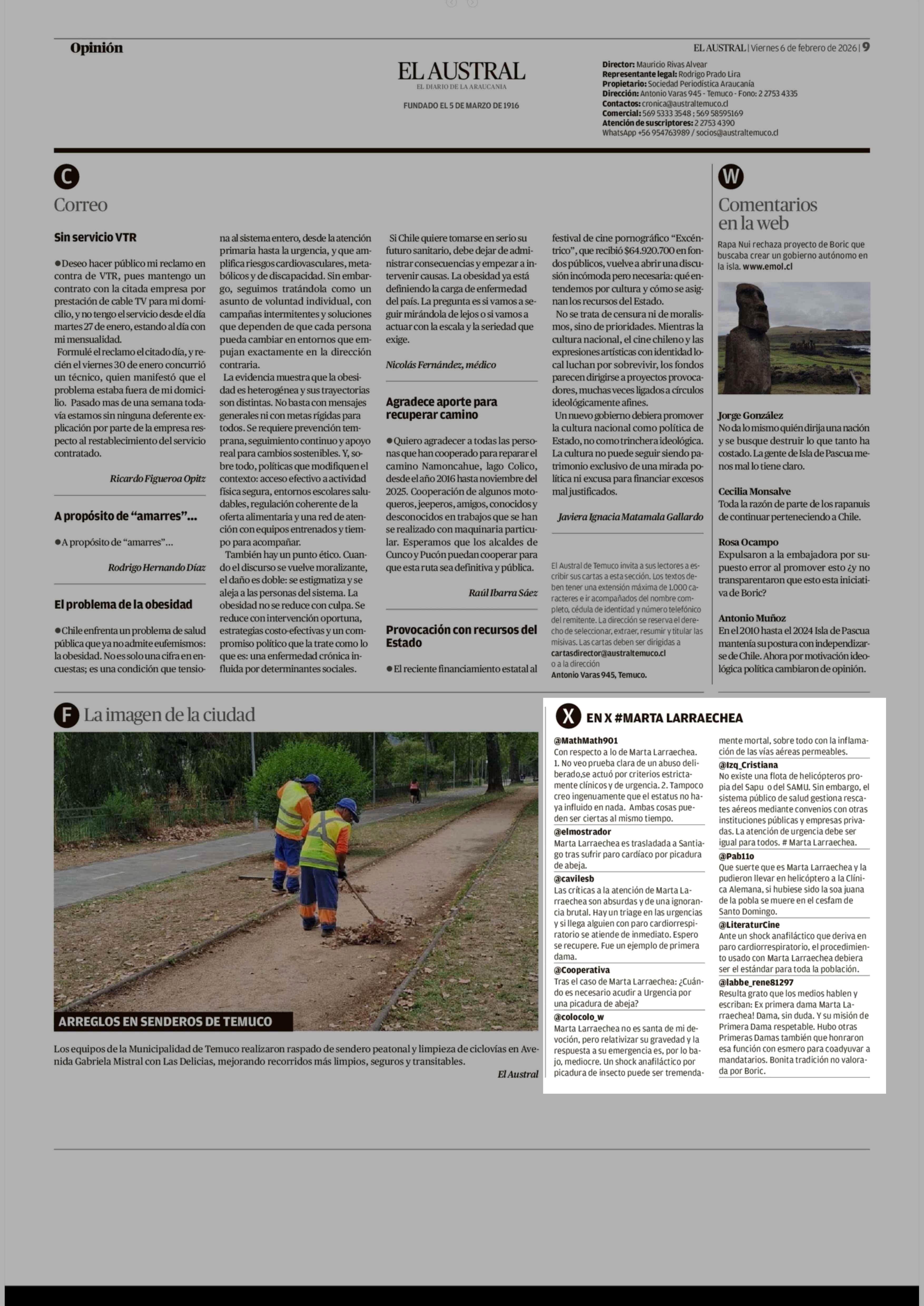 EN X H$MARTA LARRAECHEA 06-02-2026 El Austral de la Araucanía |