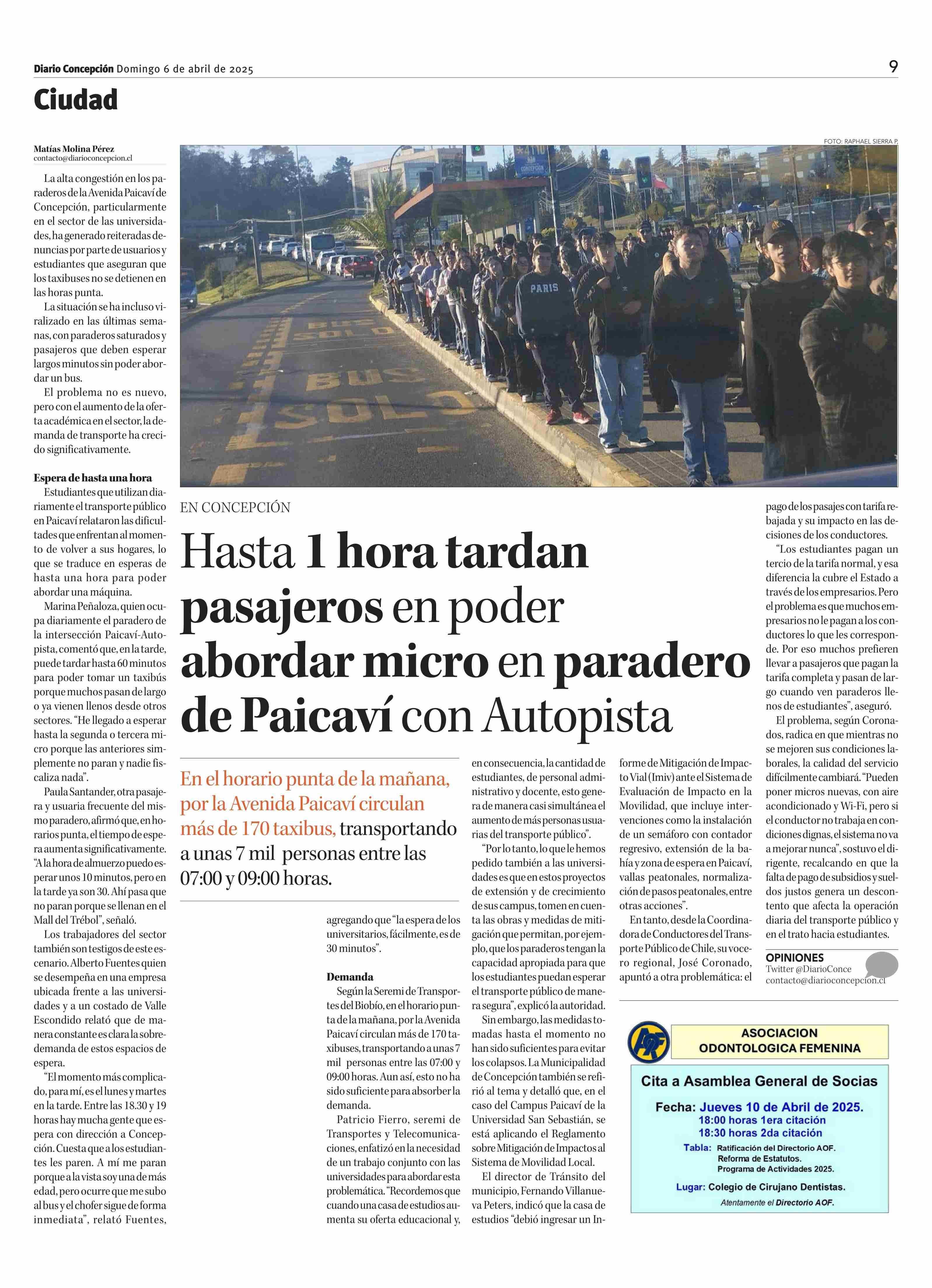 Fuente: Diario Concepción (Diario Concepción) Página(s): 9