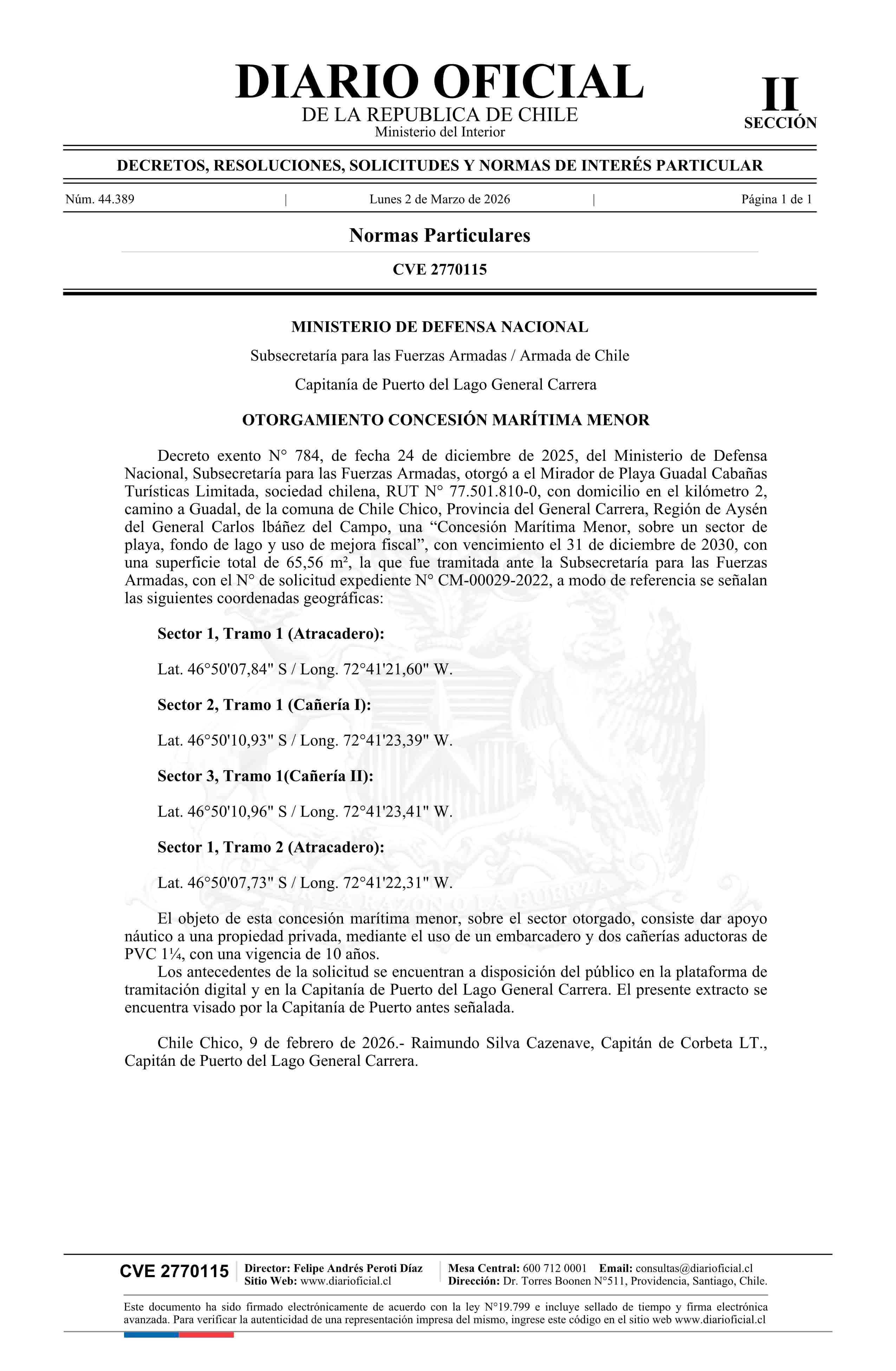 Título: Extracto de decreto exento número 784, de 2025.- Otorga concesión marítima menor