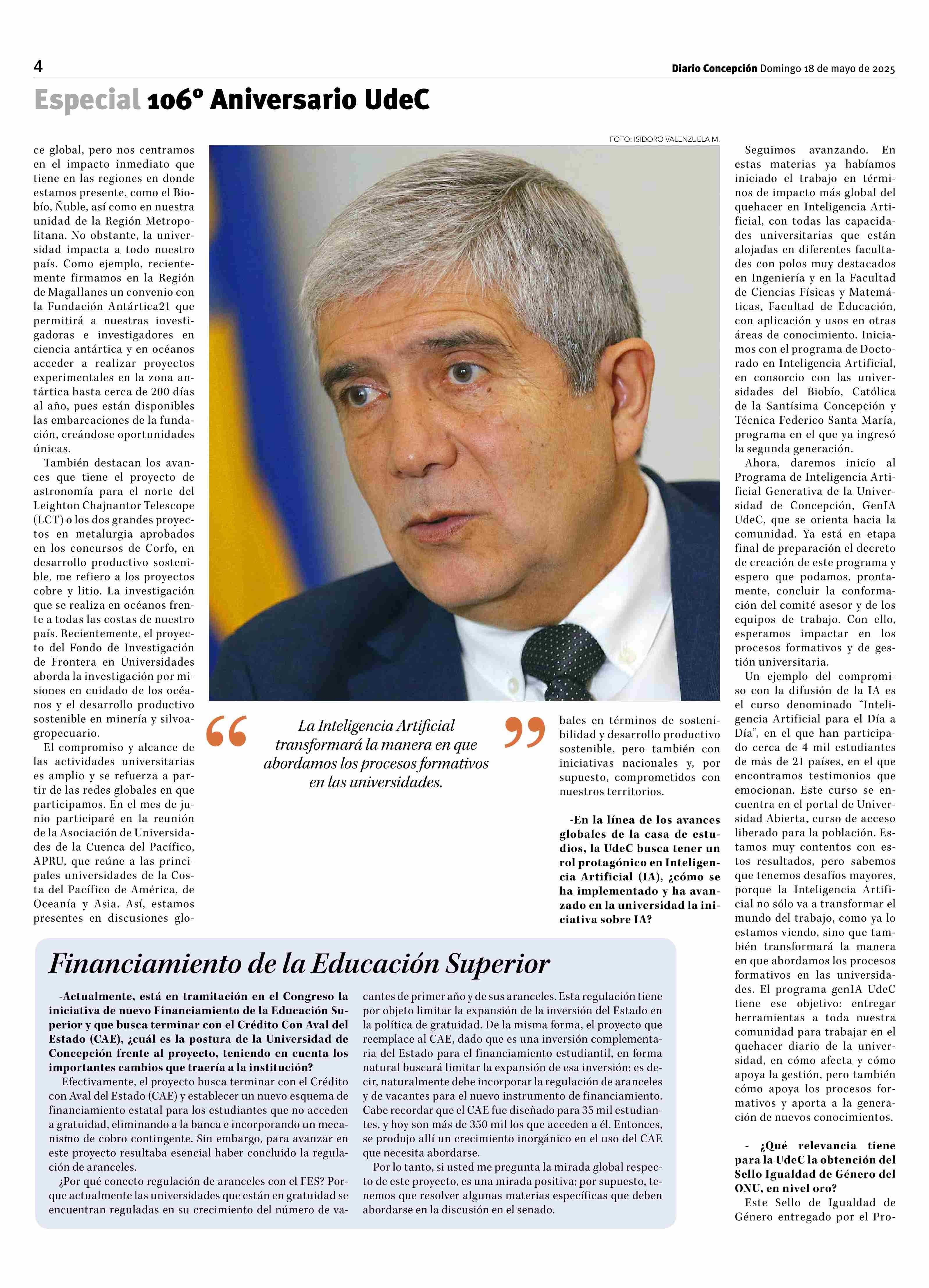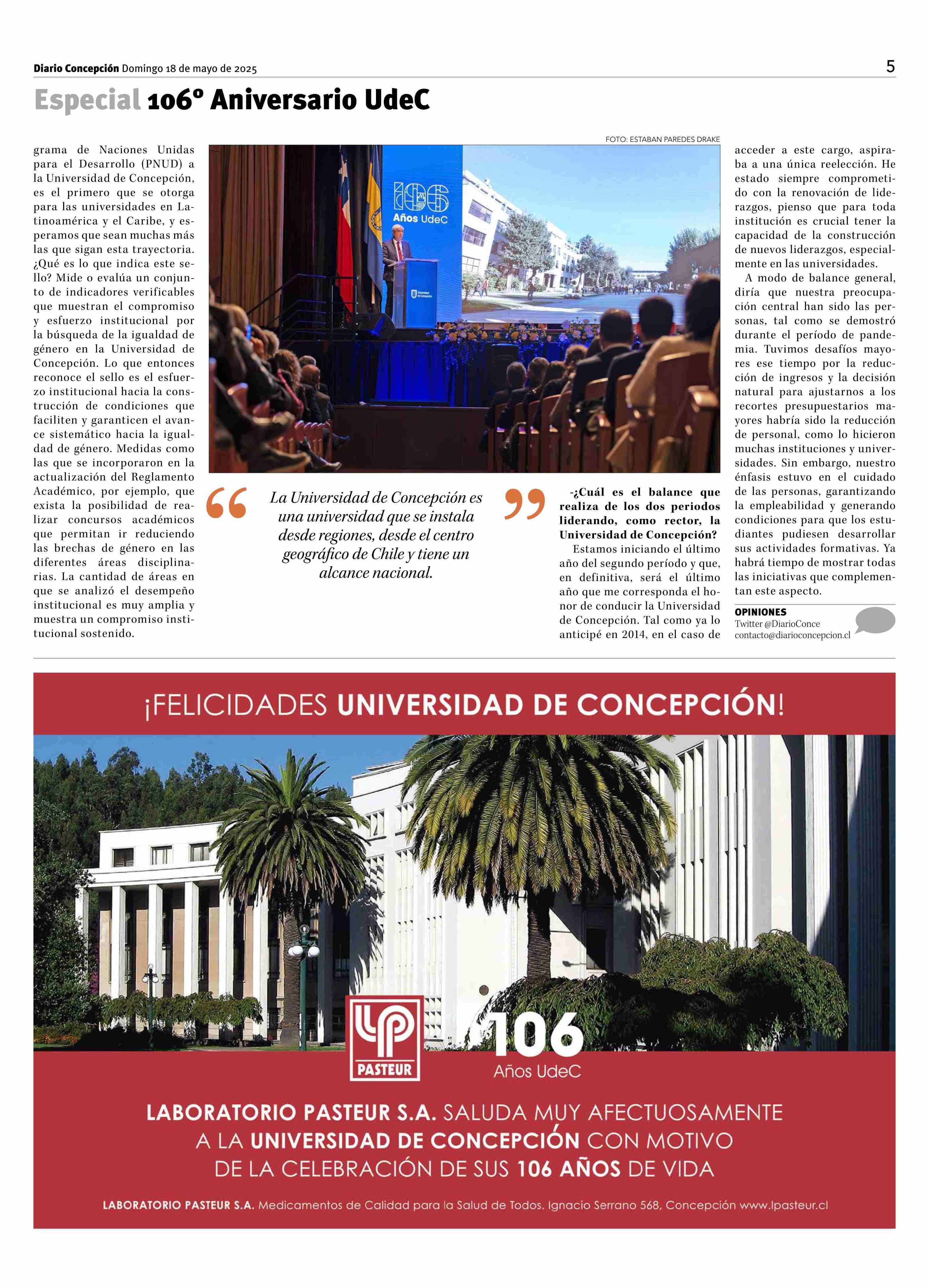 "El quehacer de la Universidad impacta a todo nuestro país" 18-05-2025 Diario Concepción |