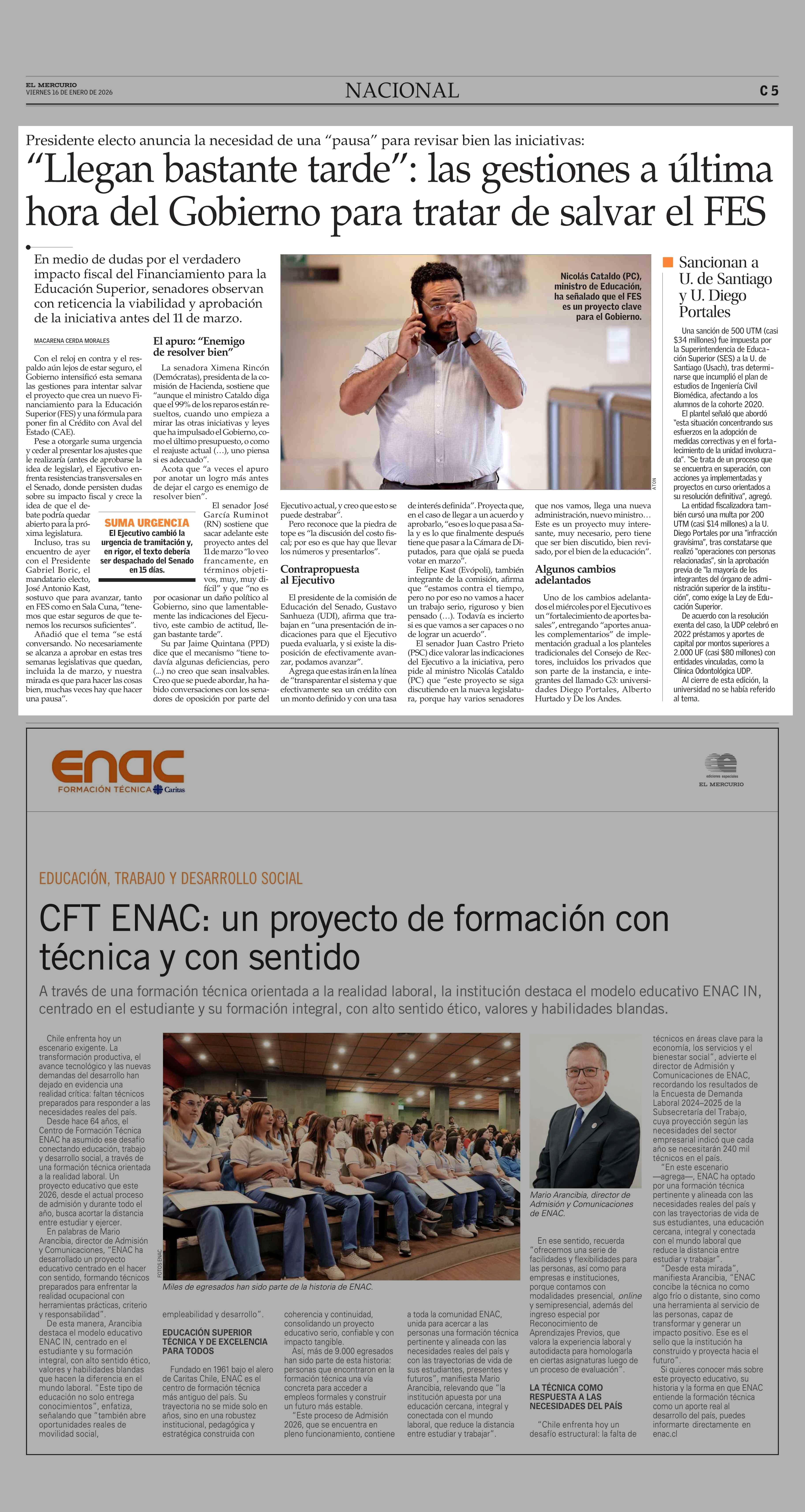 “Llegan bastante tarde”: las gestiones a última hora del Gobierno para tratar de salvar el FES 16-01-2026 El Mercurio |