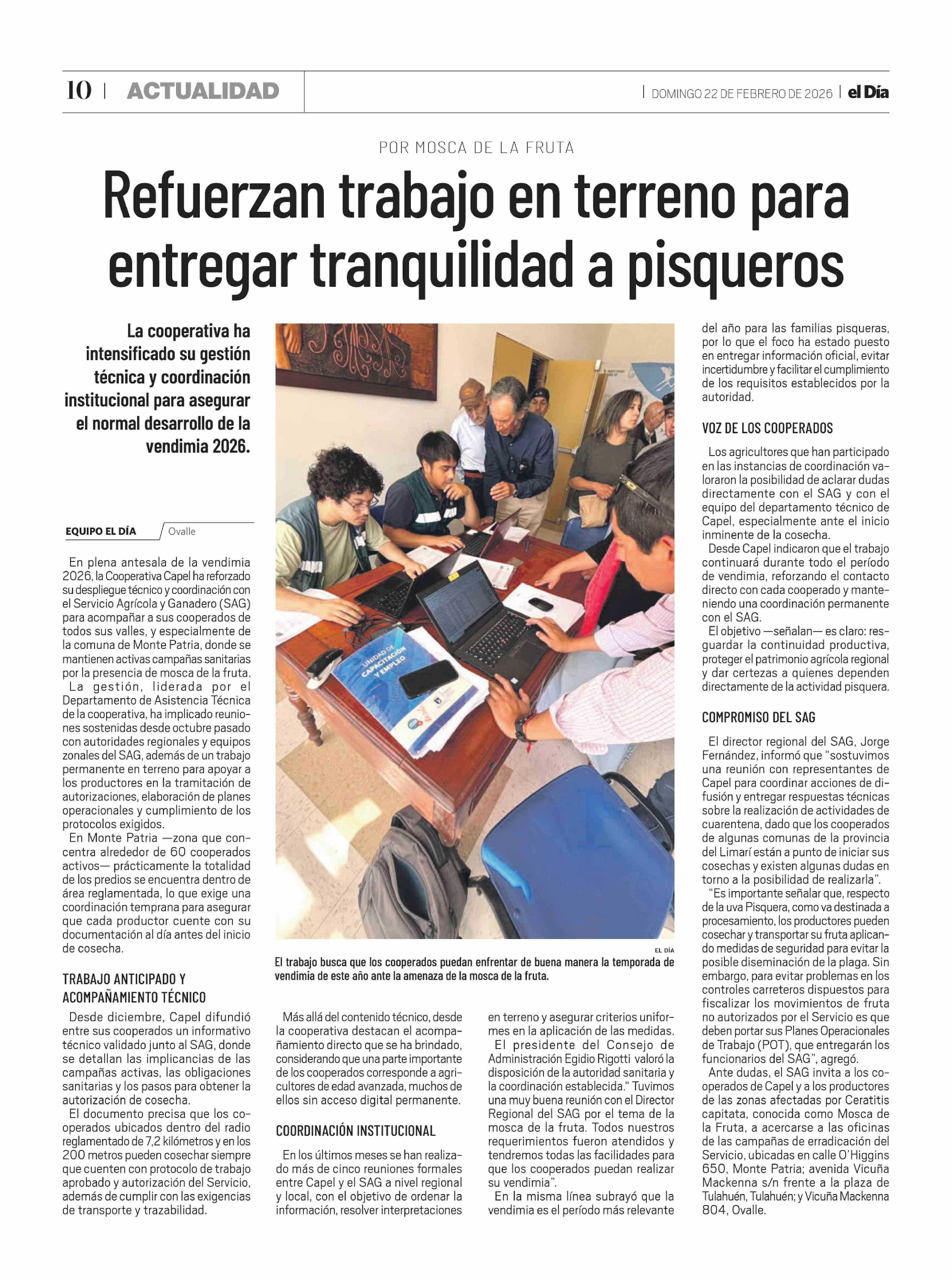 Título: Refuerzan trabajo en terreno para entregar tranquilidad a pisqueros