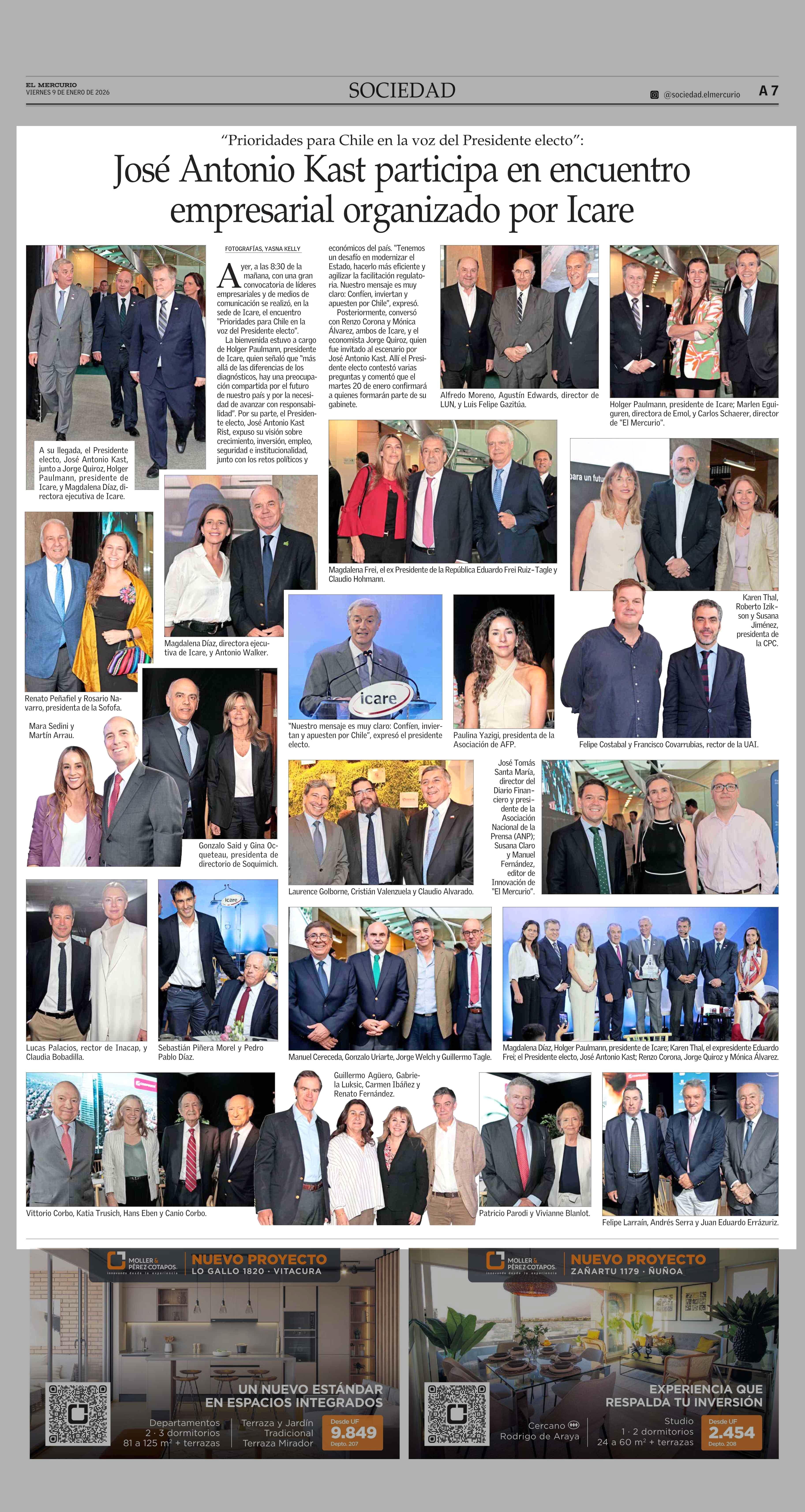 José Antonio Kast participa en encuentro empresarial organizado por Icare 09-01-2026 El Mercurio |