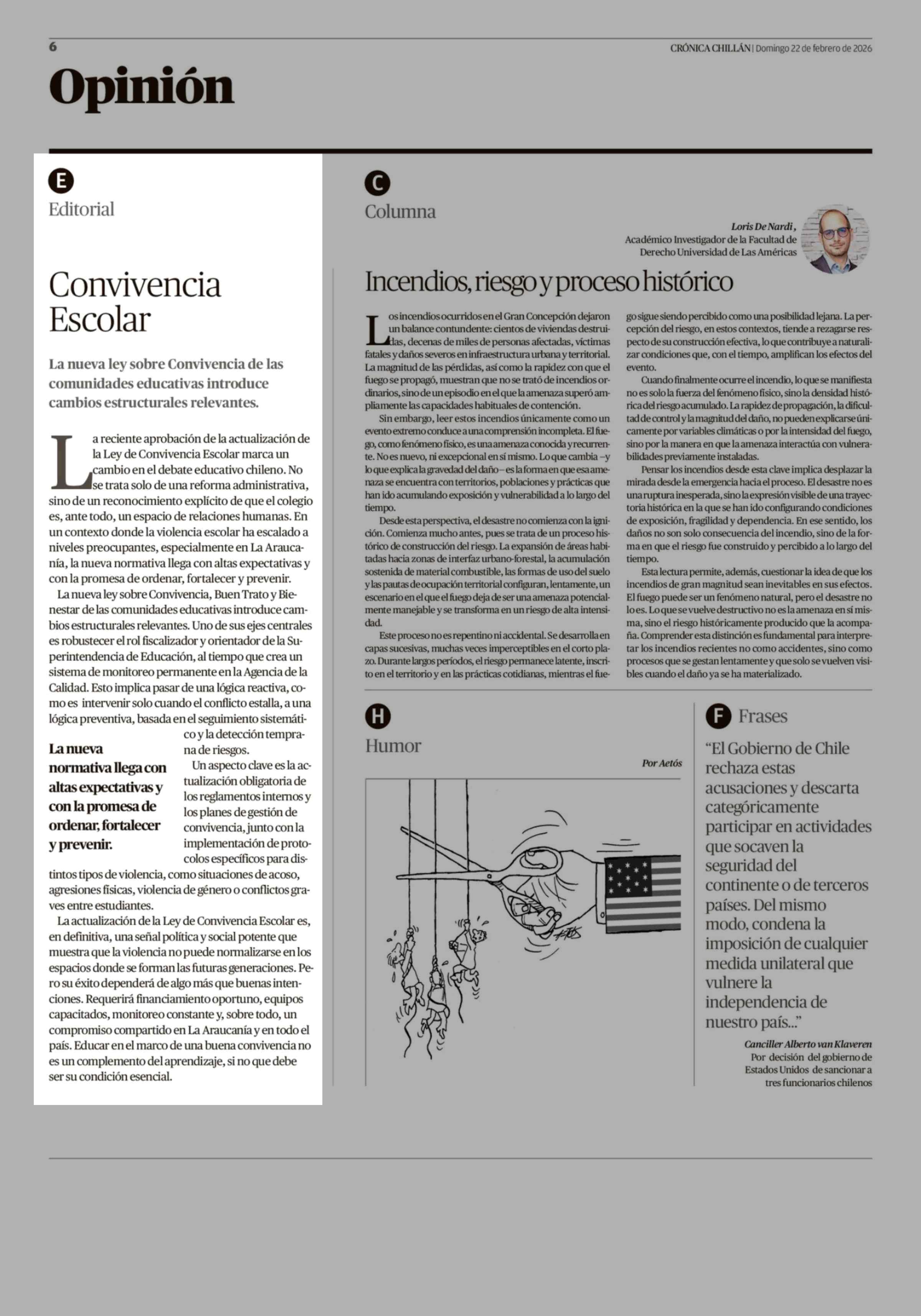 Editorial: Convivencia Escolar 22-02-2026 Crónica de Chillán |