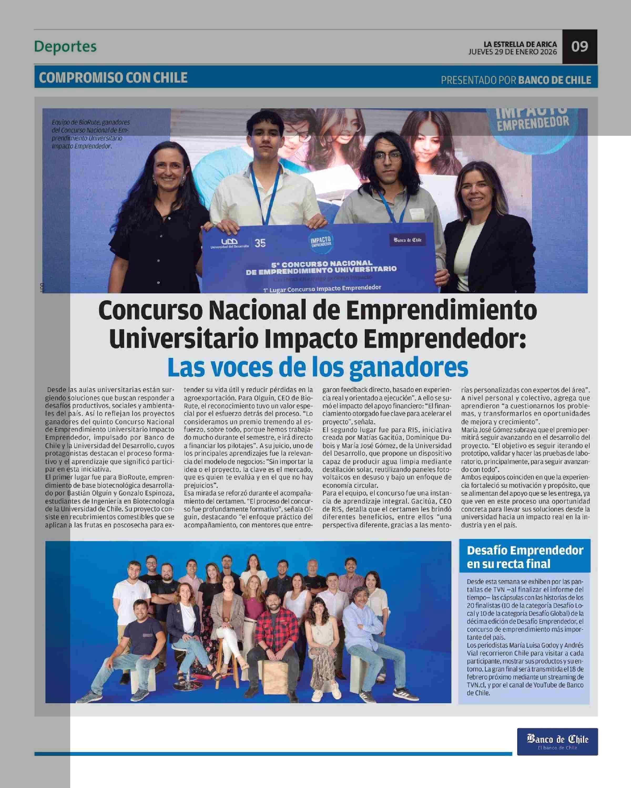 Concurso Nacional de Emprendimiento Universitario Impacto Emprendedor: Las voces de los ganadores 29-01-2026 La Estrella de Arica |
