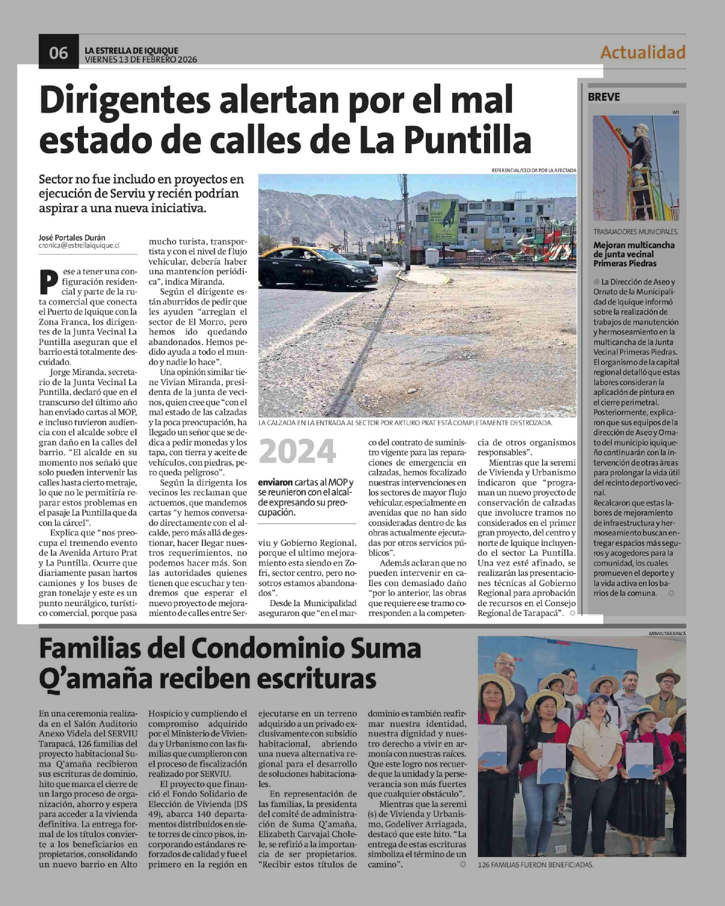 | Fecha: | 13-02-2026 | Sector: | Noticia general | Región: | Región de Tarapacá |