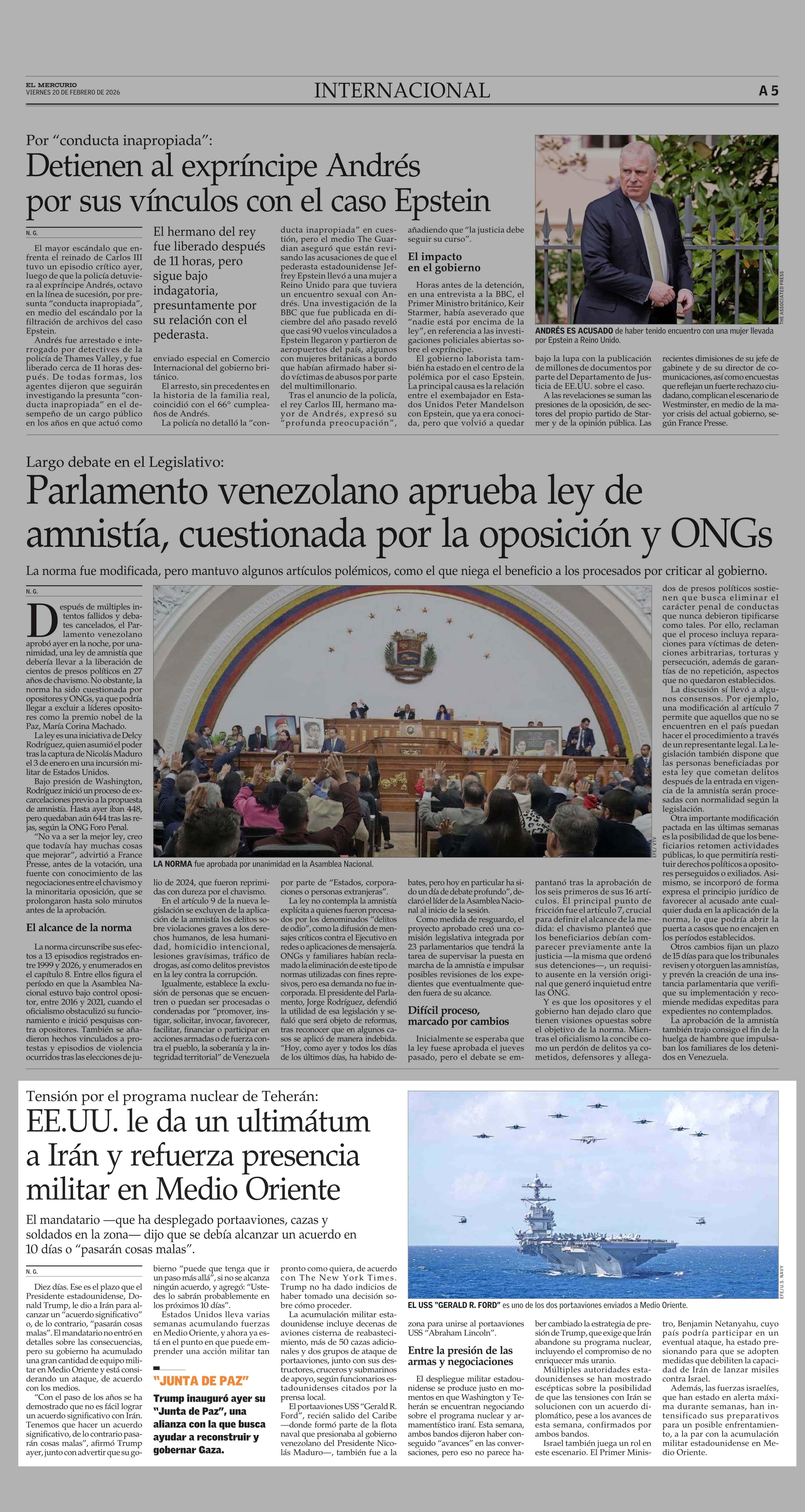 EE.UU. le da un ultimátum a Irán y refuerza presencia militar en Medio Oriente 20-02-2026 El Mercurio |