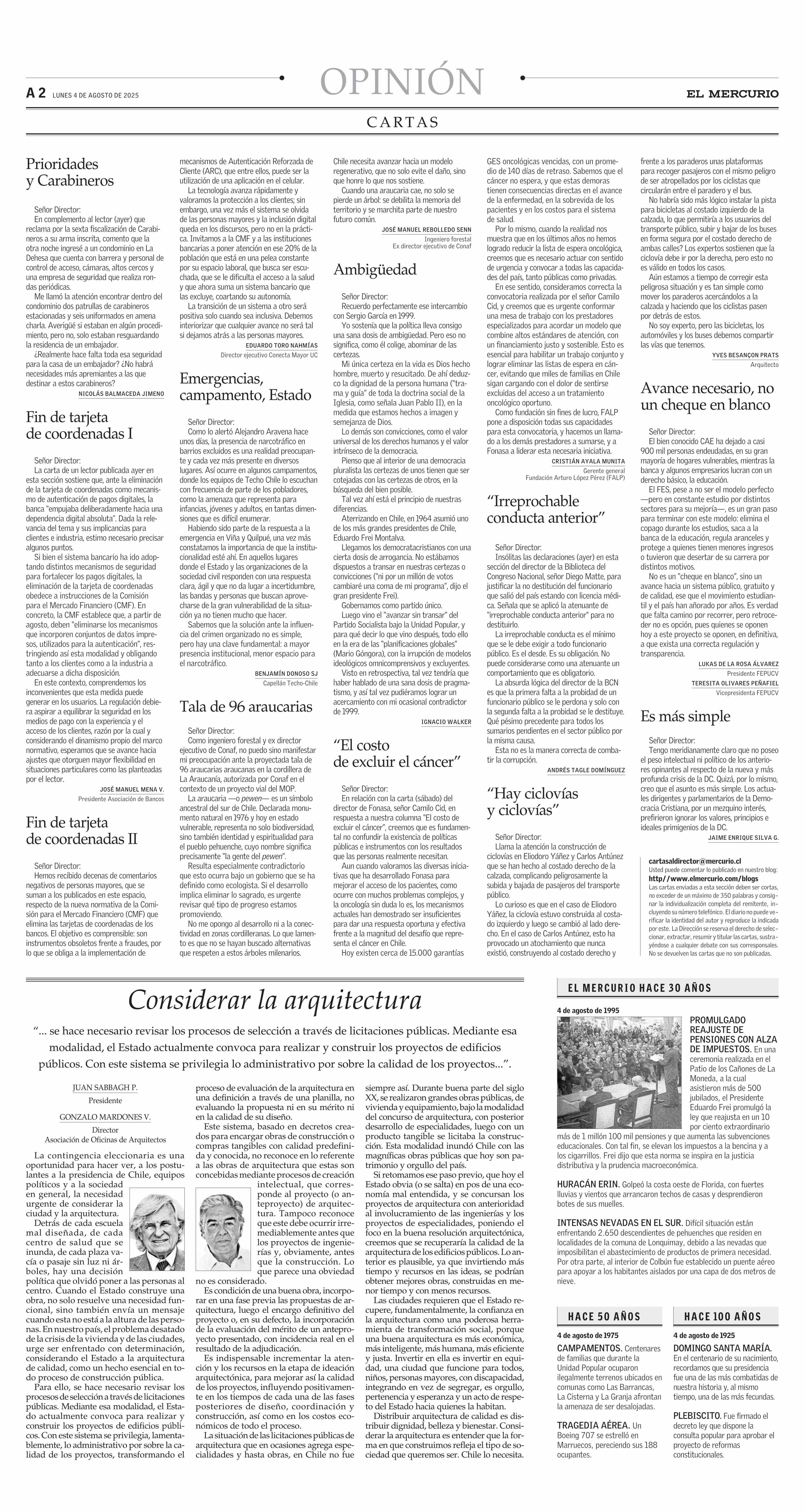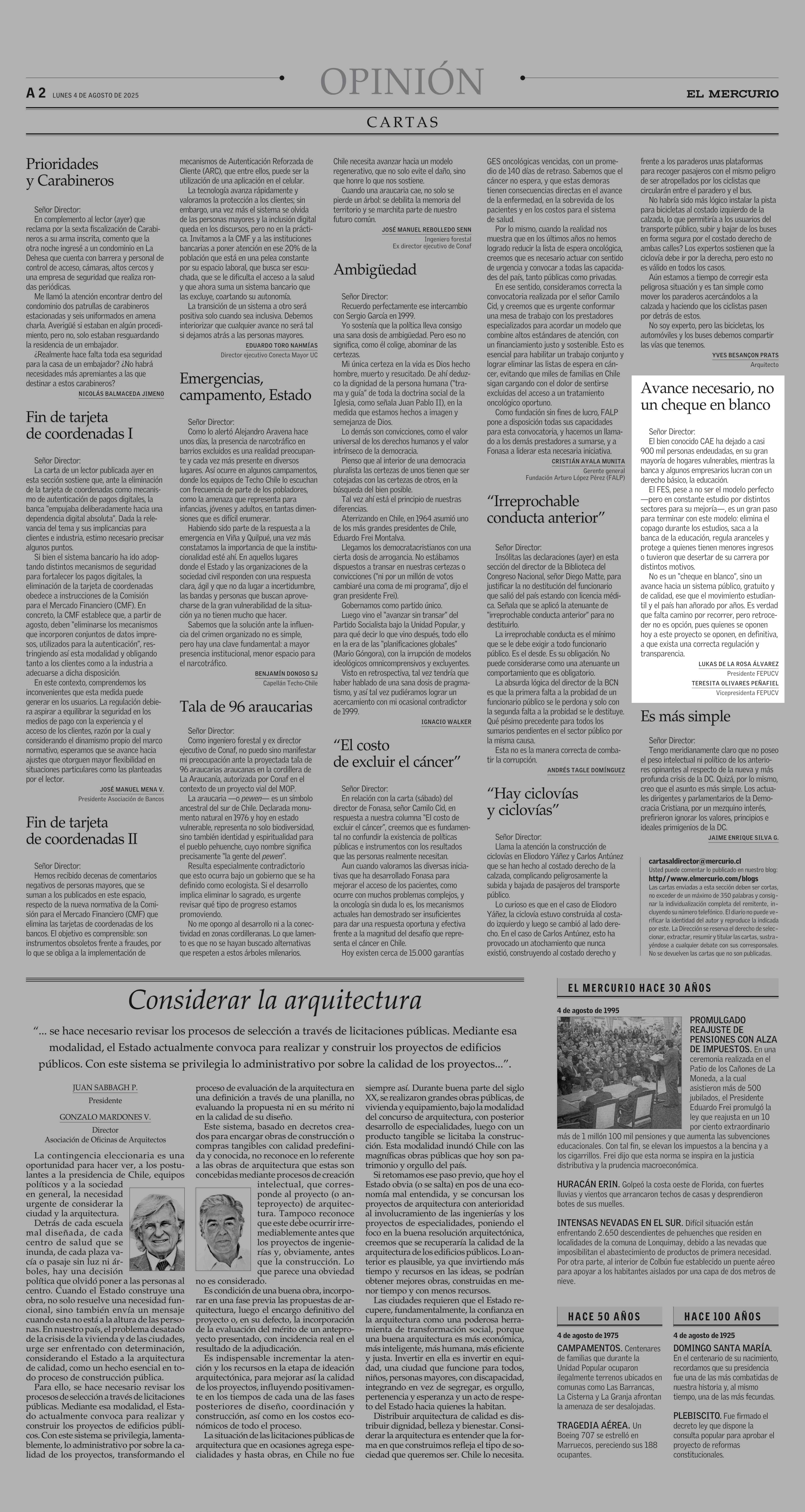 CARTAS: Avance necesario, no un cheque en blanco 04-08-2025 El Mercurio |