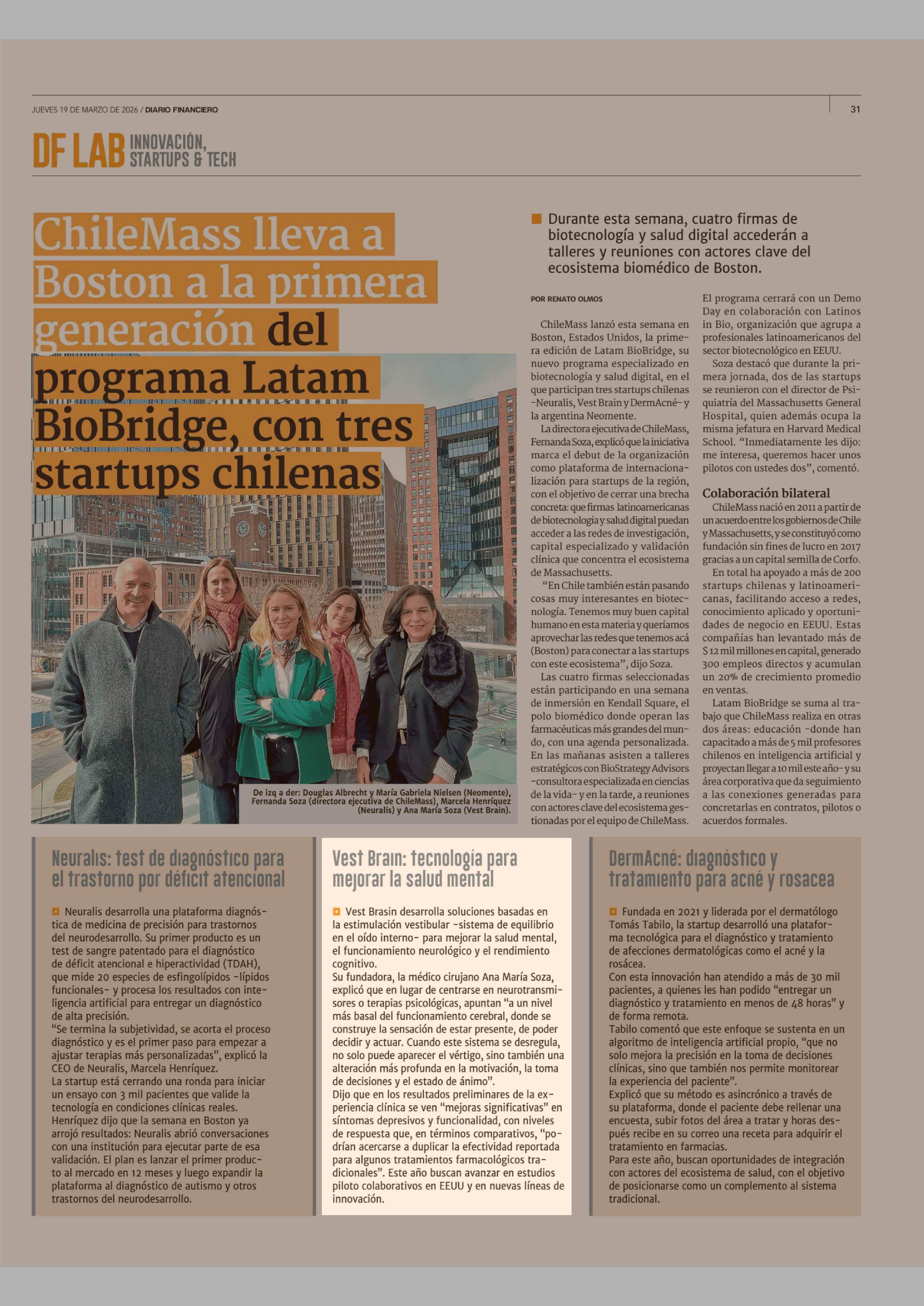 Vest Brain: tecnología para mejorar la salud mental 19-03-2026 Diario Financiero |
