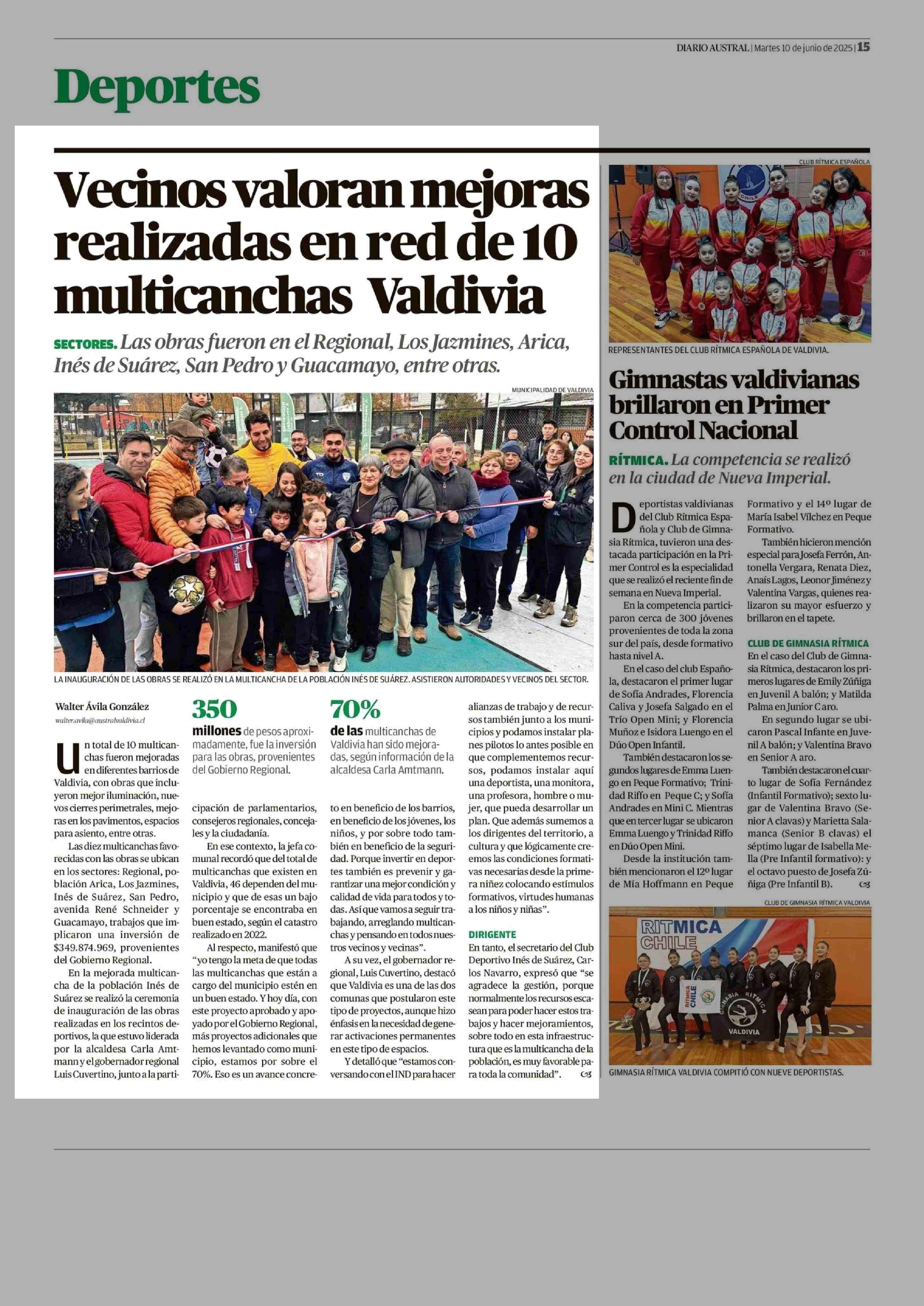 Vecinos valoran mejoras realizadas en red de 10 multicanchas Valdivía 10-06-2025 Diario Austral Región de Los Ríos |