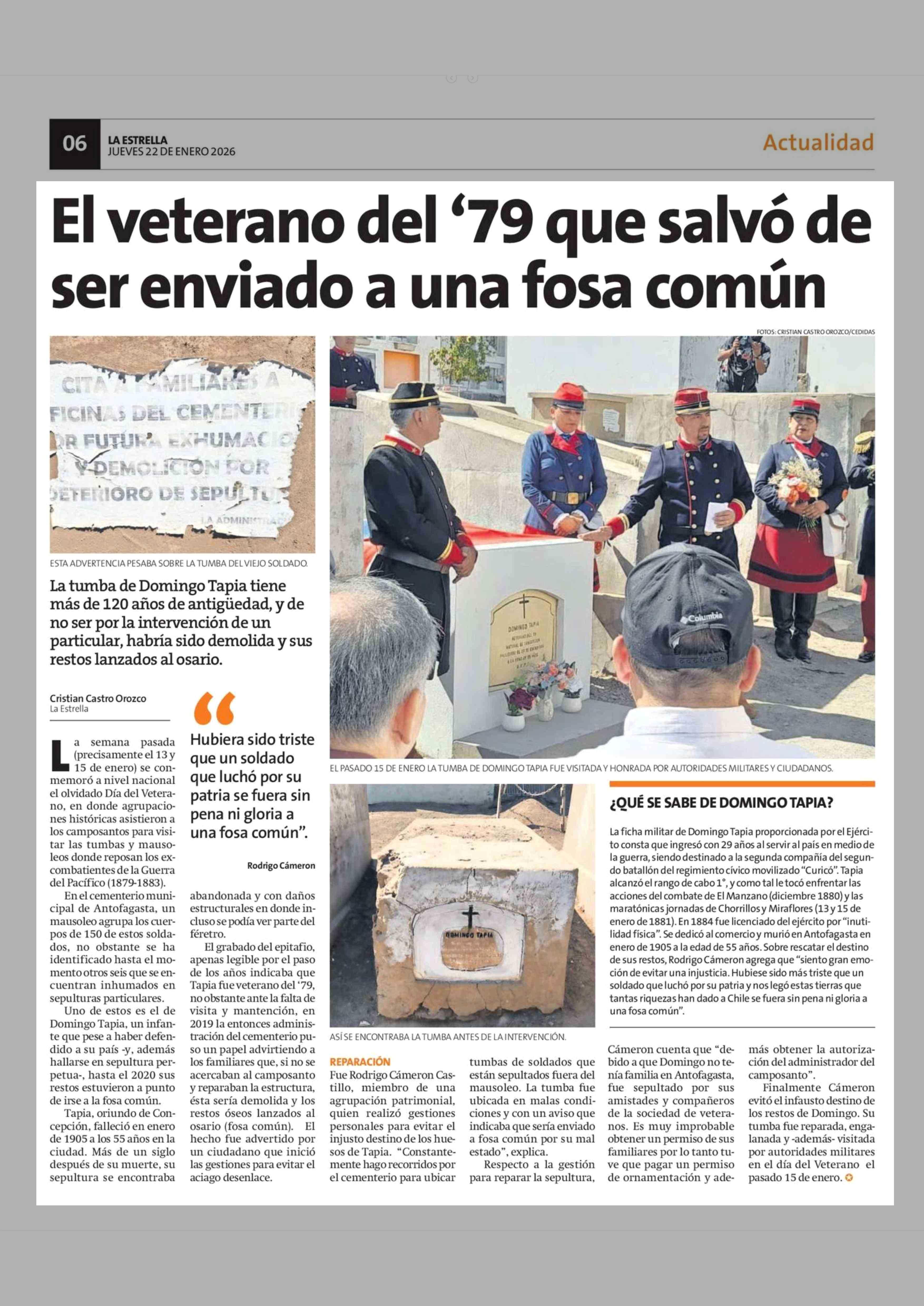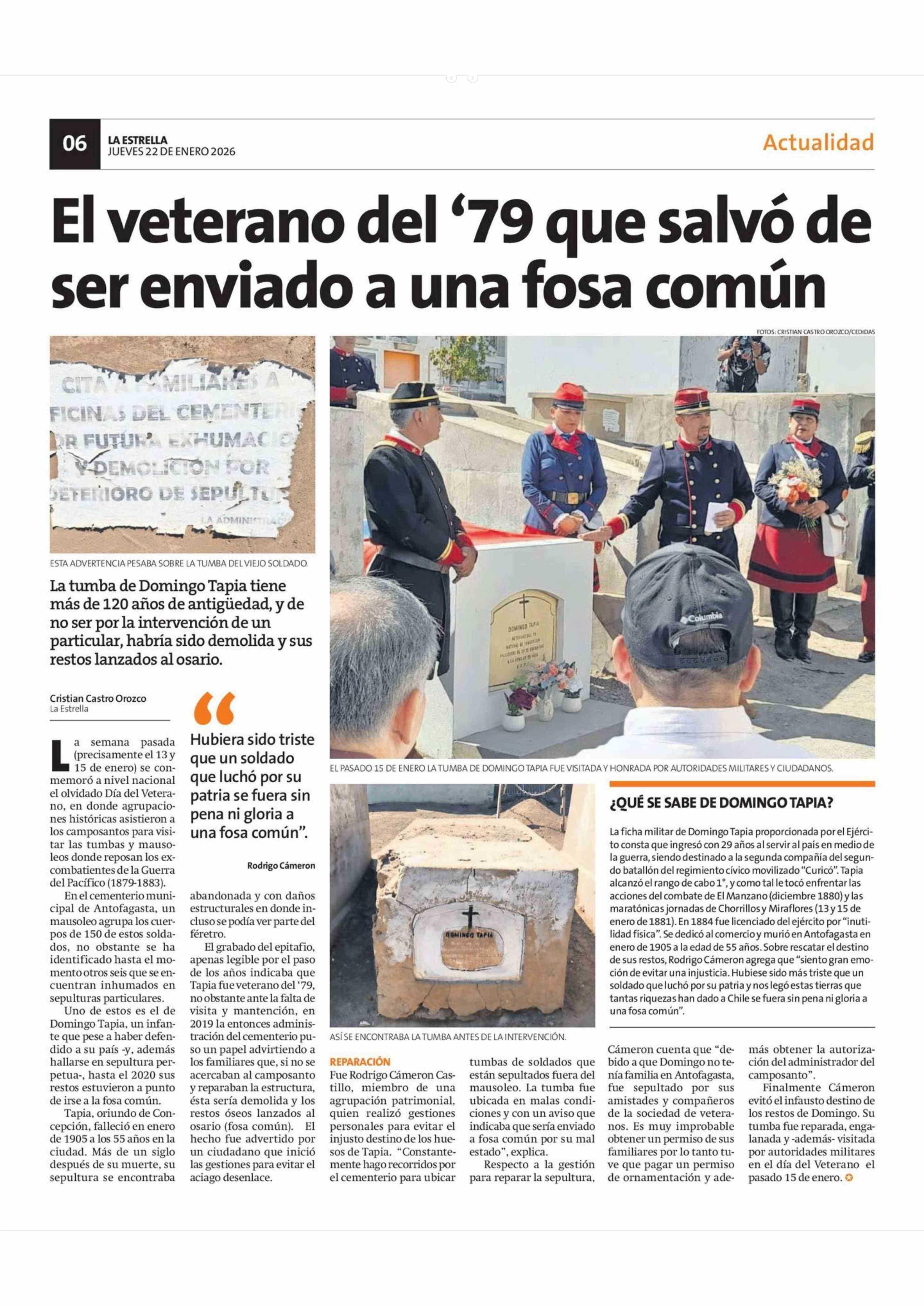 El veterano del '79 que salvó de ser enviado a una fosa común 22-01-2026 La Estrella de Antofagasta |