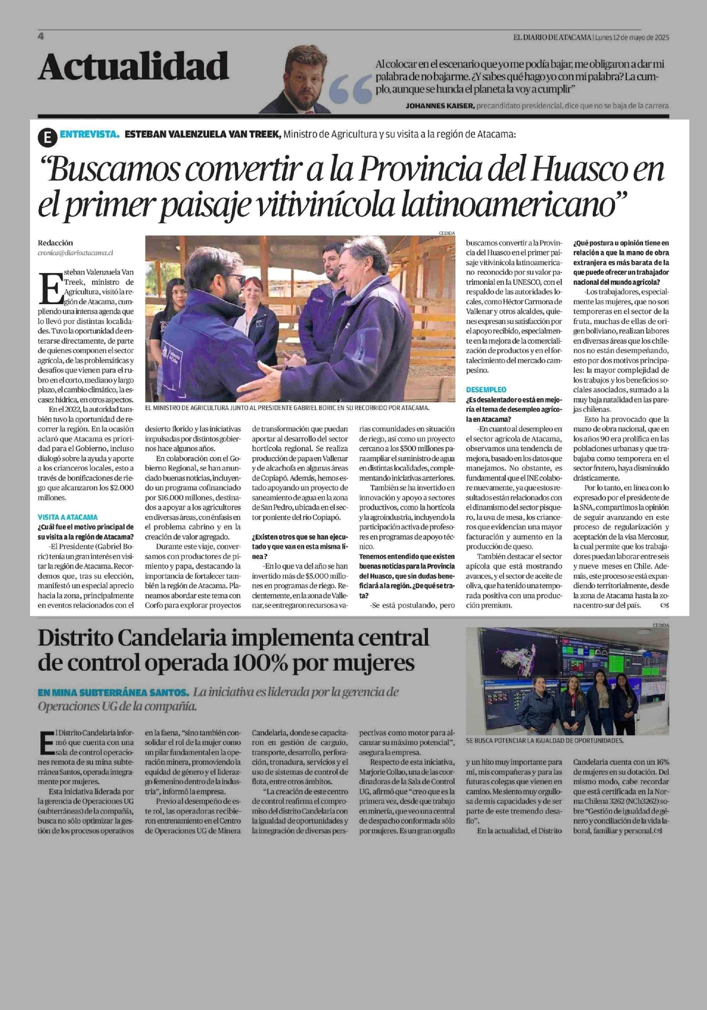 “Buscamos convertir a la Provincia del Huasco en el primer paisaje vitivinícola latinoamericano” 12-05-2025 El Diario de Atacama |