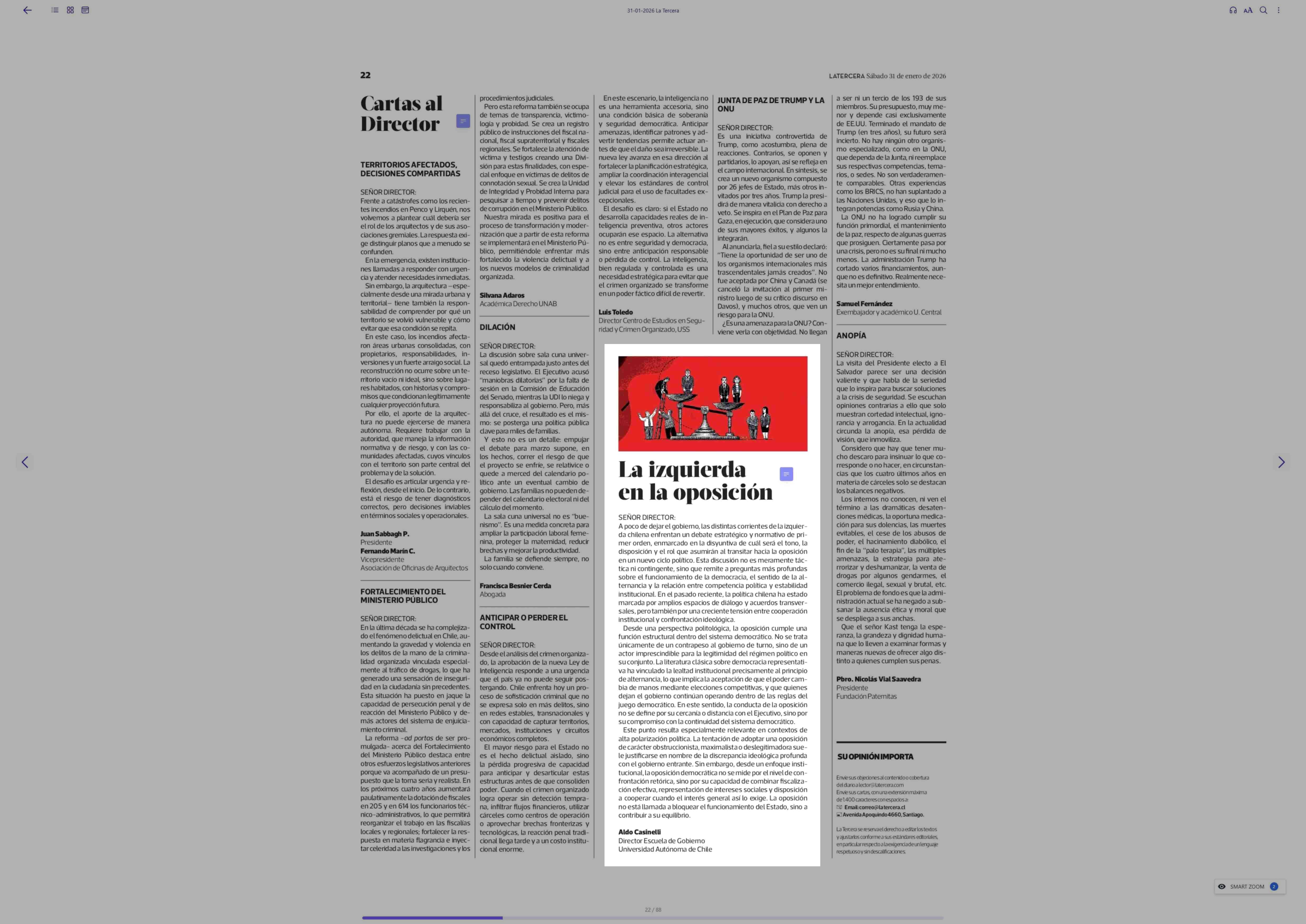 CARTAS: La izquierda a en la oposición 31-01-2026 La Tercera |