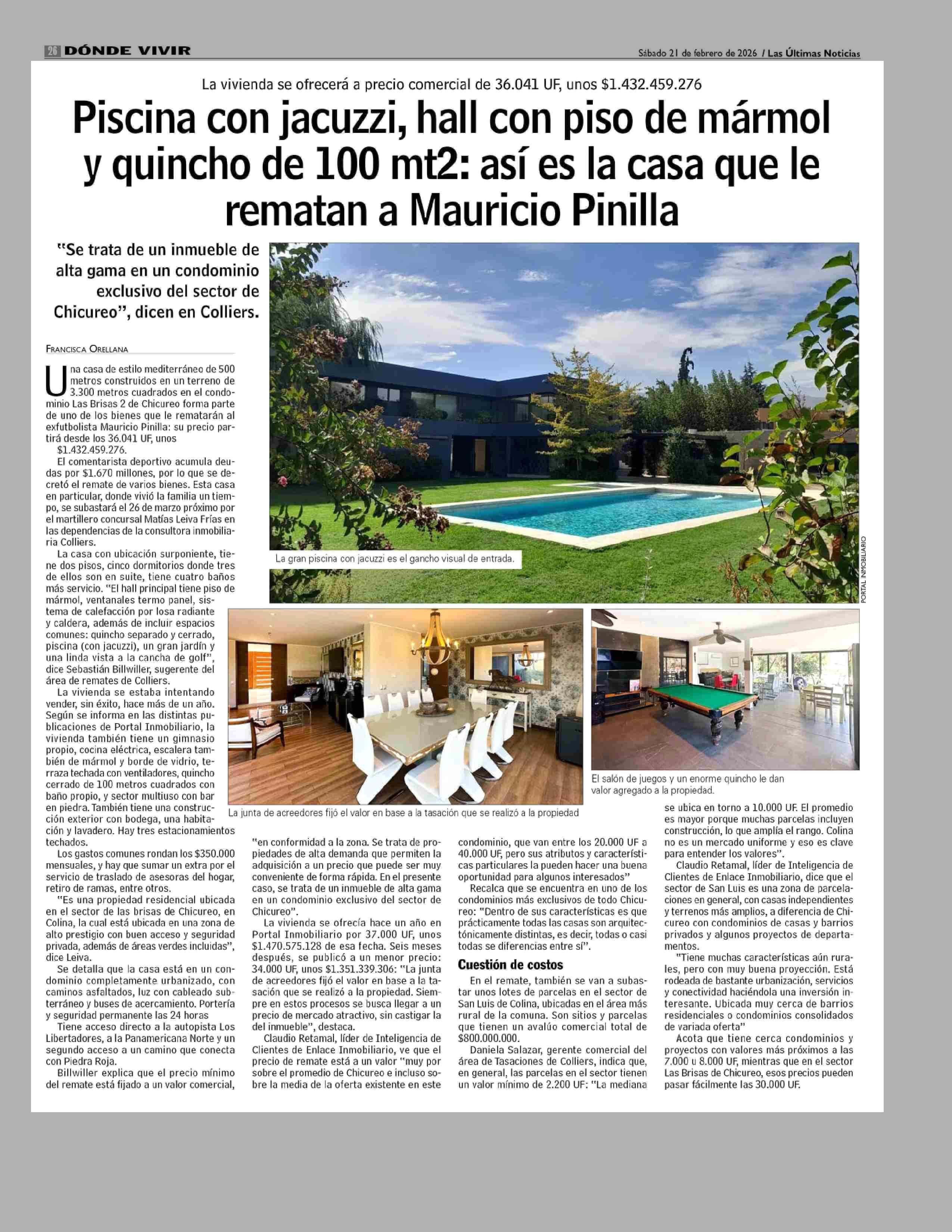 Piscina con jacuzzi, hall con piso de mármol y quincho de 100 mt2: así es la casa que le rematan a Mauricio Pinilla 21-02-2026 Las Últimas Noticias |