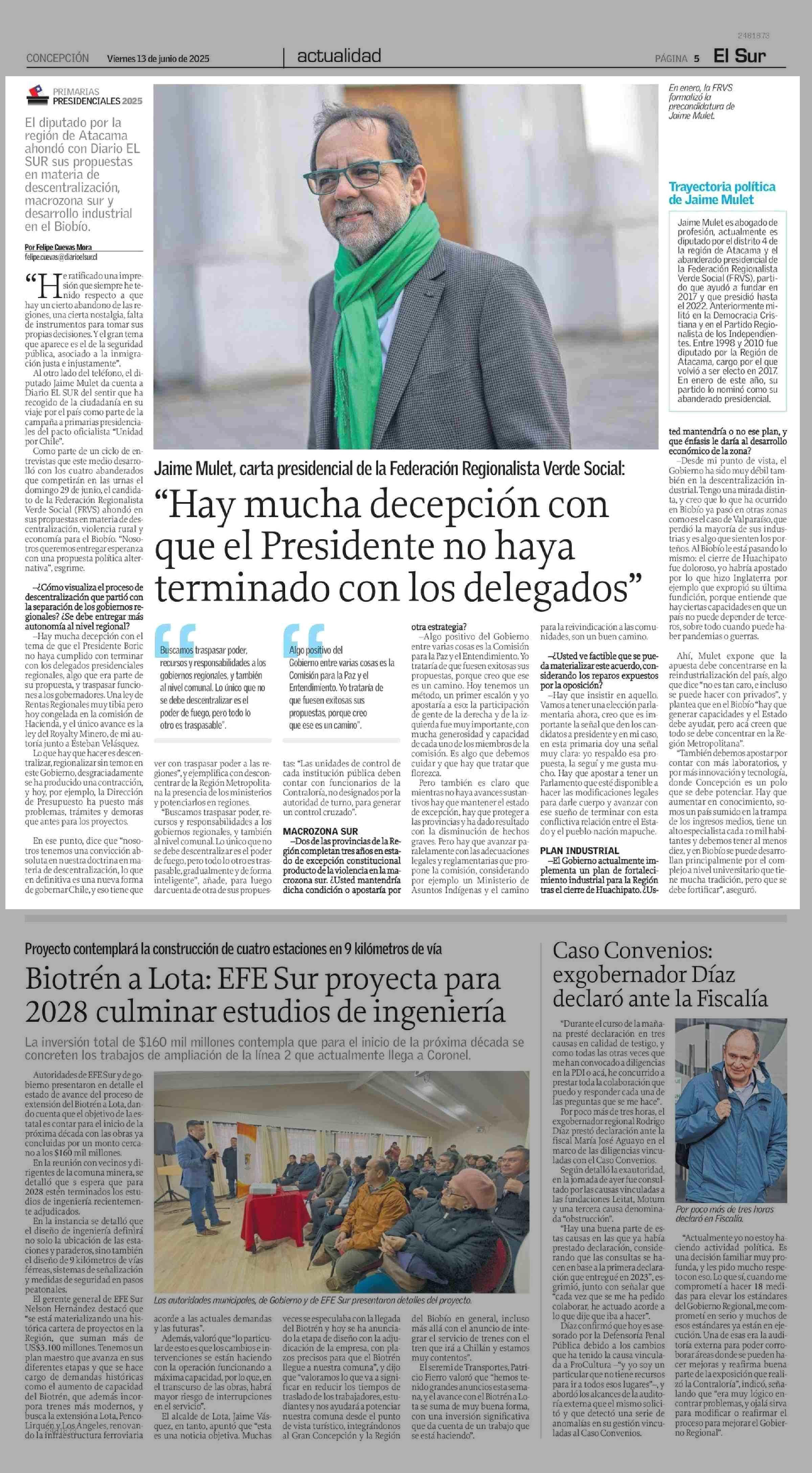 “Hay mucha decepción con que el Presidente no haya terminado con los delegados” 13-06-2025 El Sur |