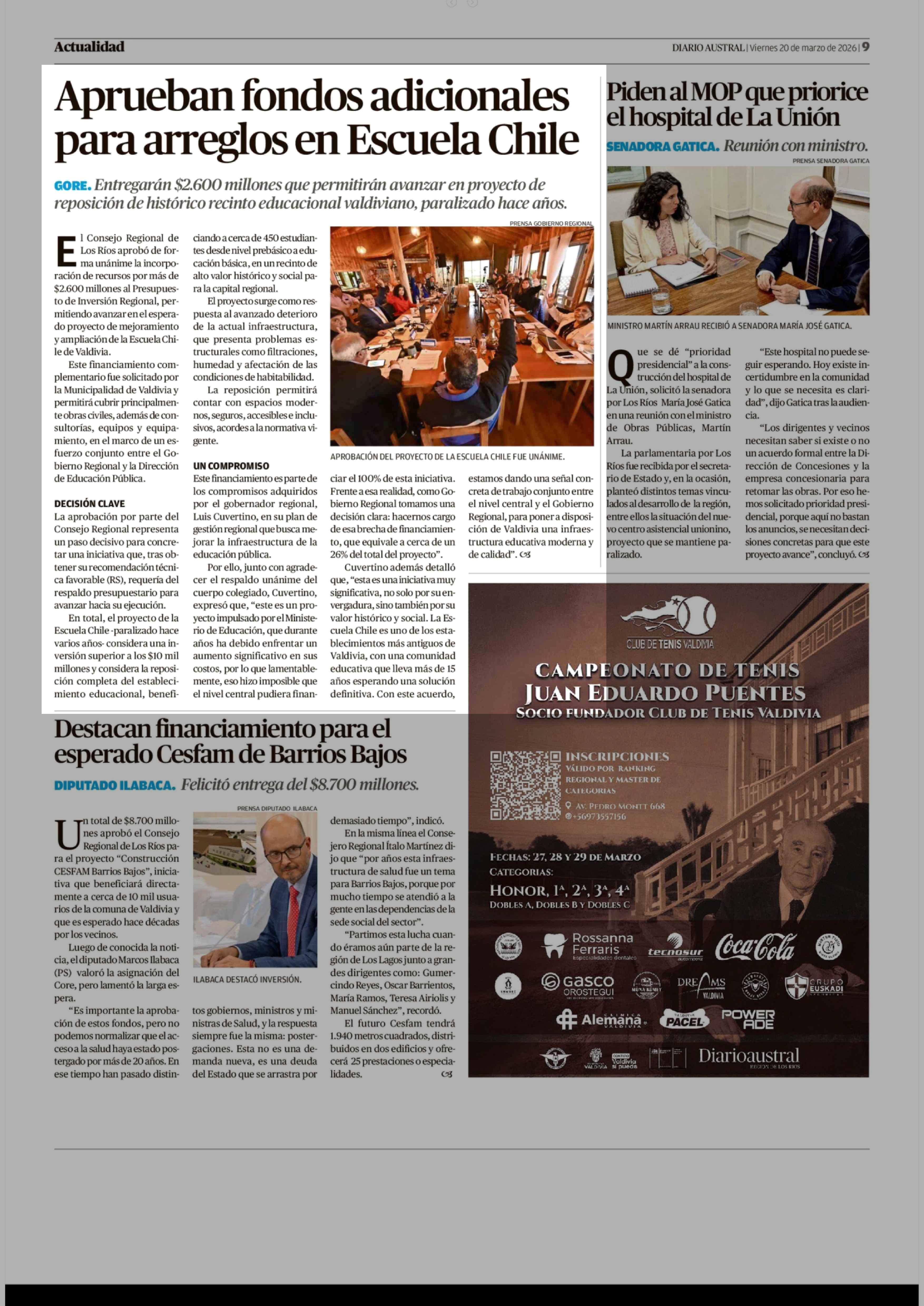 Aprueban fondos adicionales para arreglos en Escuela Chile 20-03-2026 Diario Austral Región de Los Ríos |