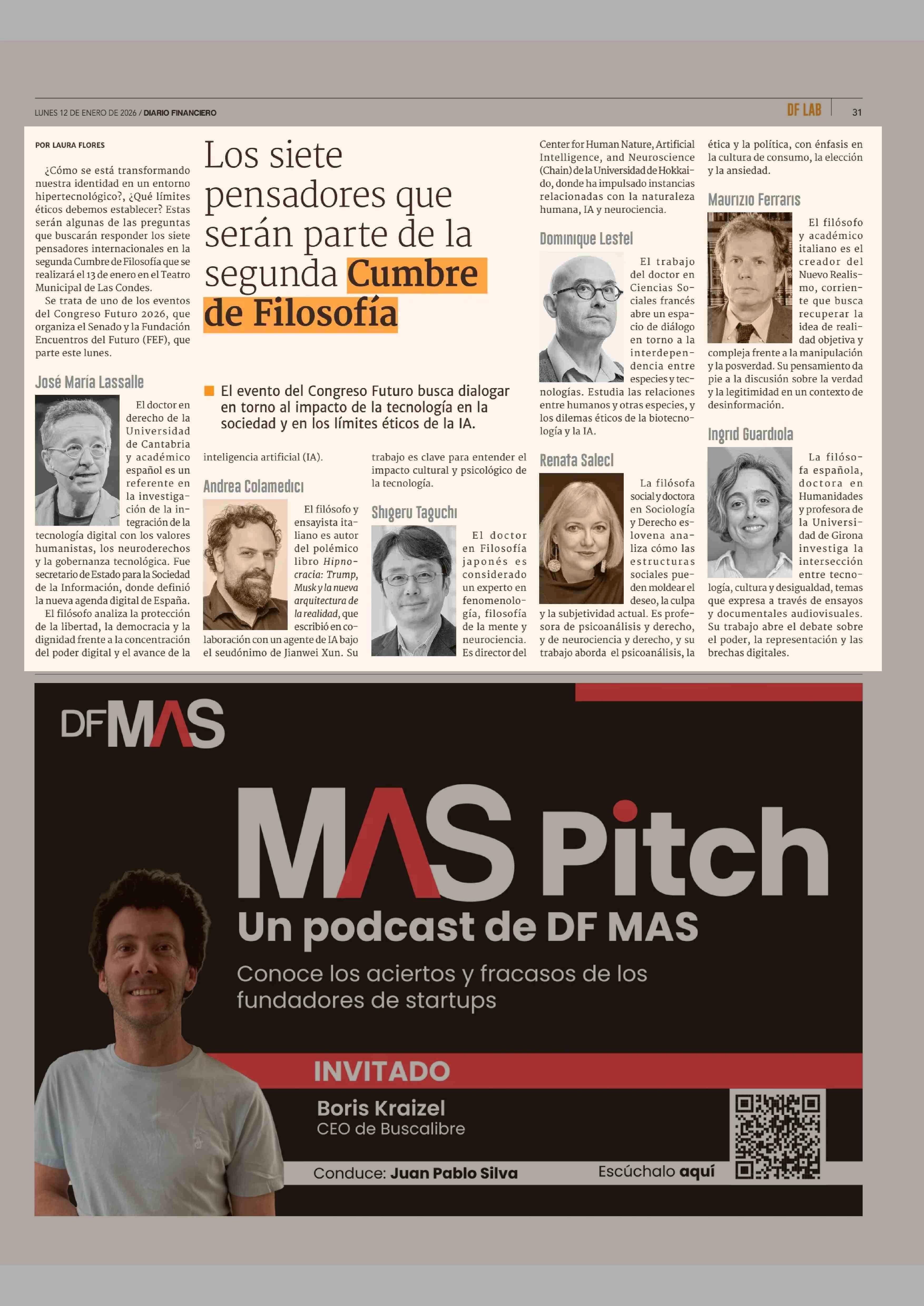 Los siete pensadores que serán parte de la segunda Cumbre de Filosofía 12-01-2026 Diario Financiero |