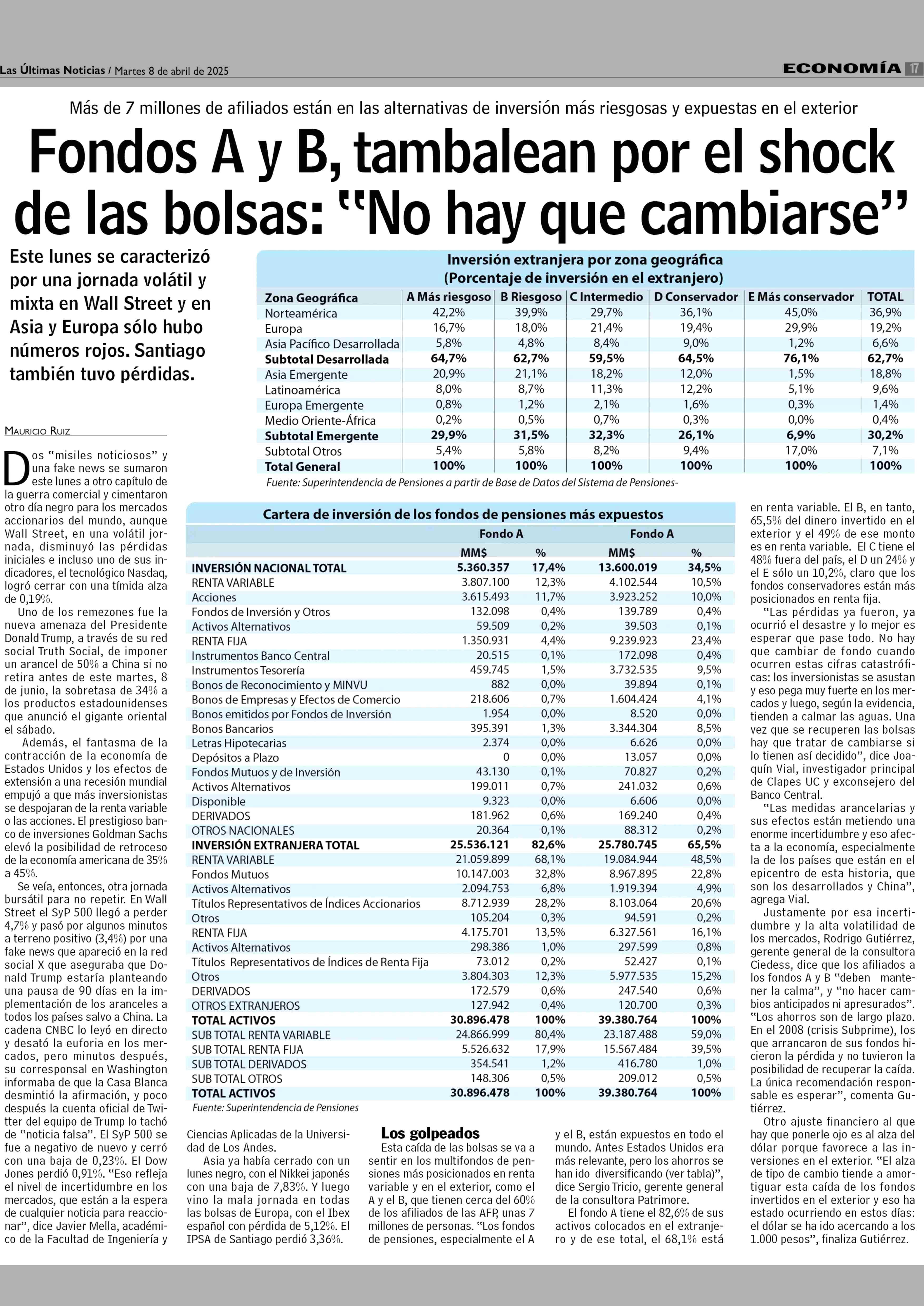 Fondos A y B, tambalean por el shock de las bolsas: “No hay que cambiarse” 08-04-2025 Las Últimas Noticias |