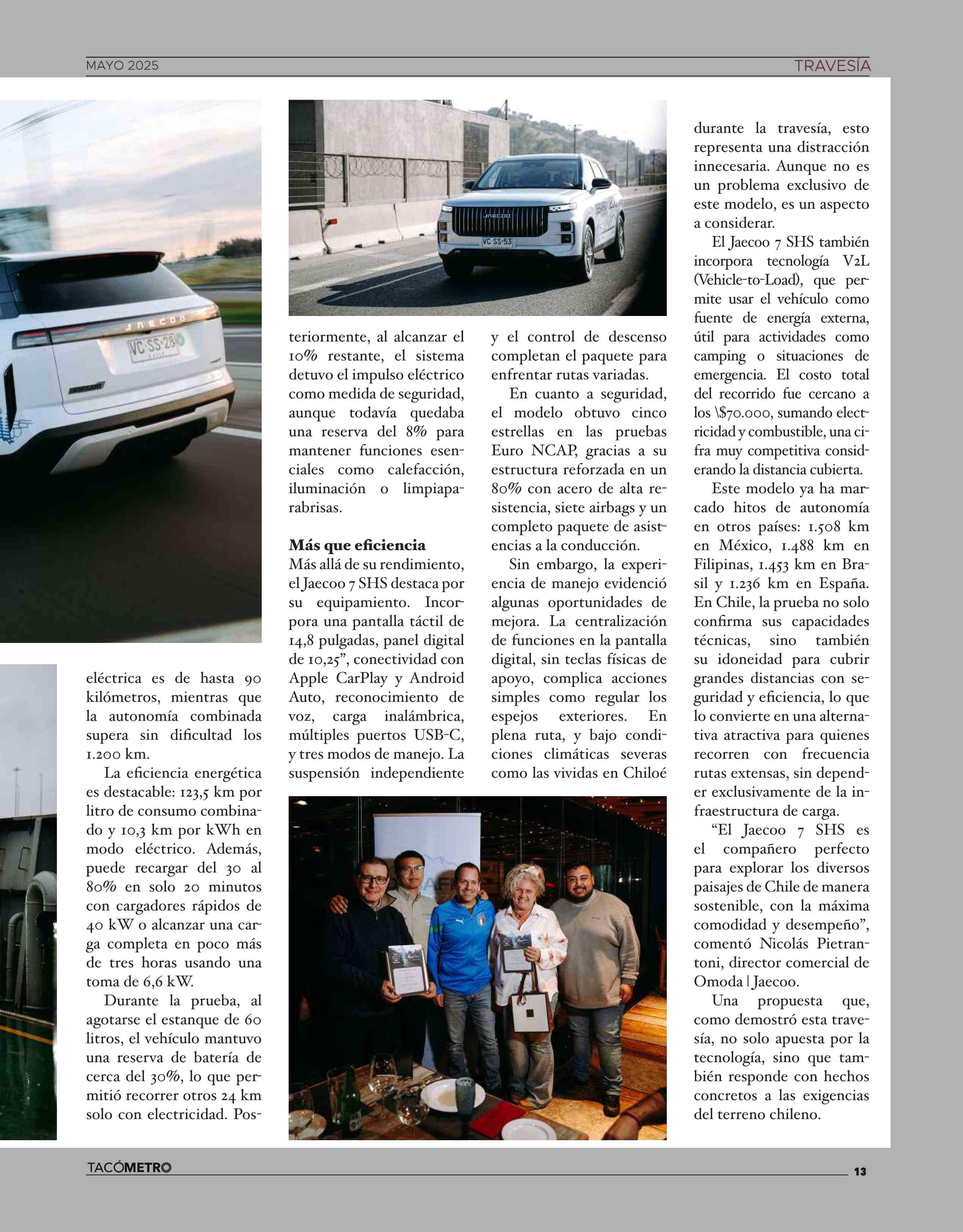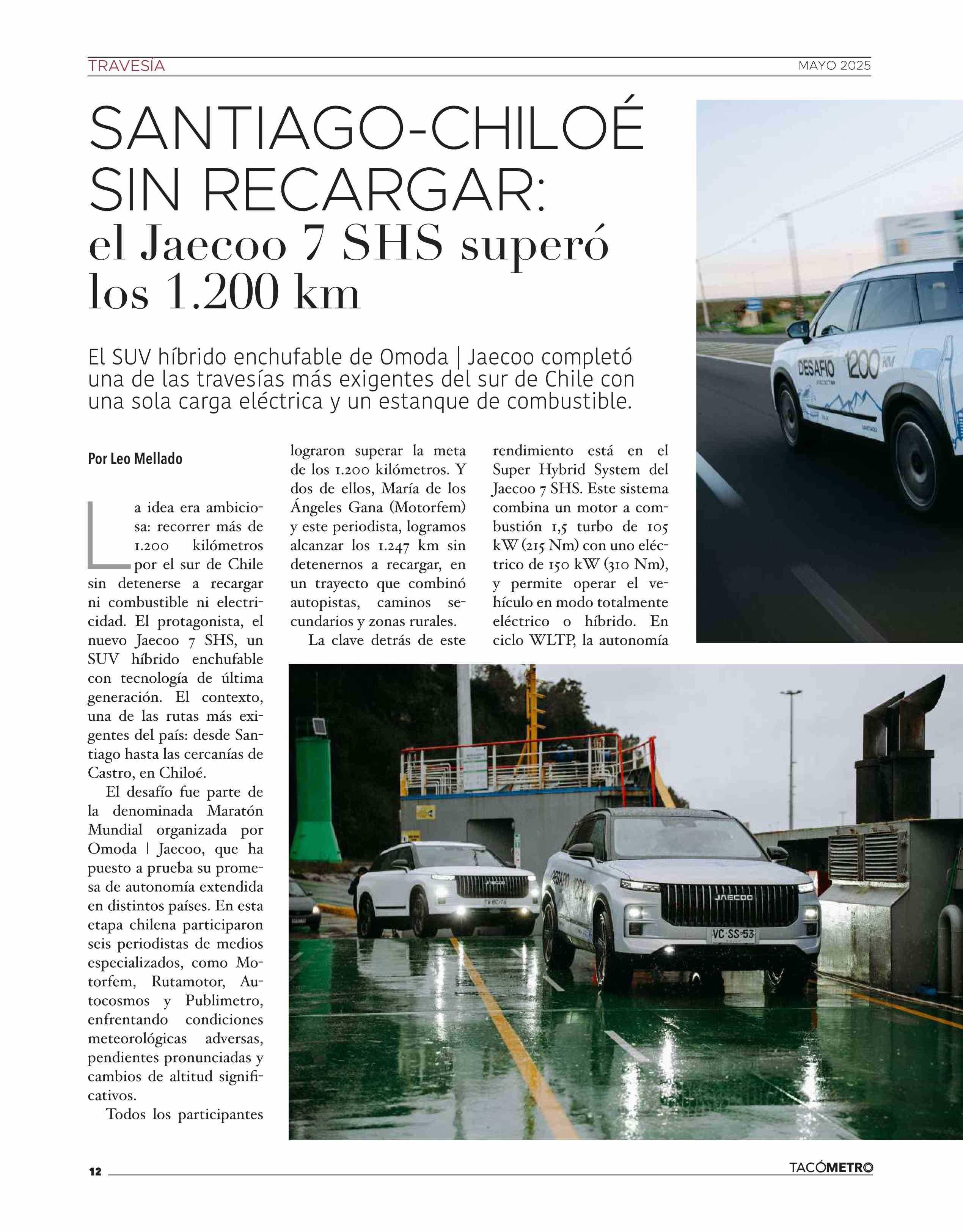 SANTIAGO-CHILOÉ SIN RECARGAR: el Jaecoo 7 SHS superó los 1.200 km 30-05-2025 Publimetro |