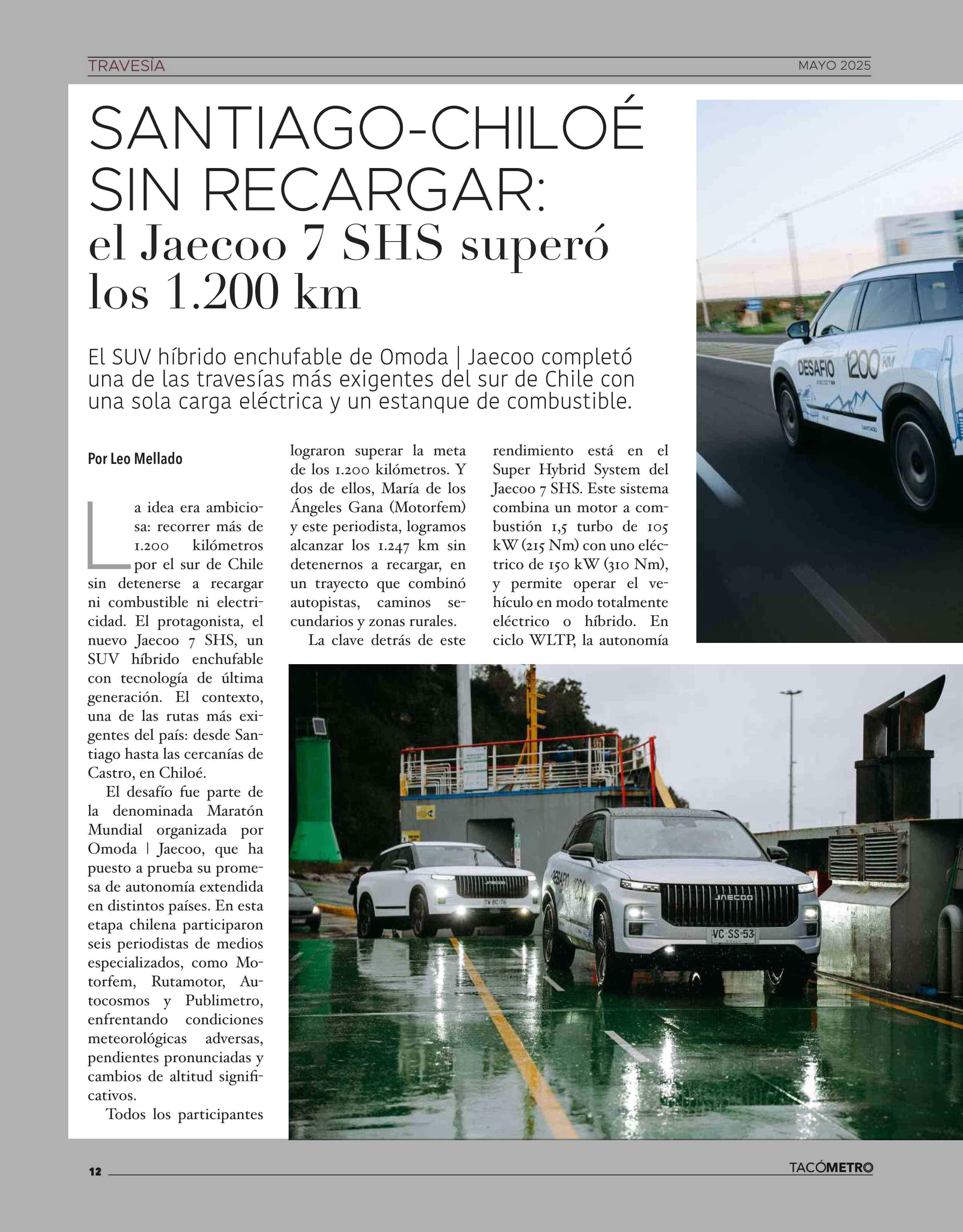 | Título: | SANTIAGO-CHILOÉ SIN RECARGAR: el Jaecoo 7 SHS superó los 1.200 km |