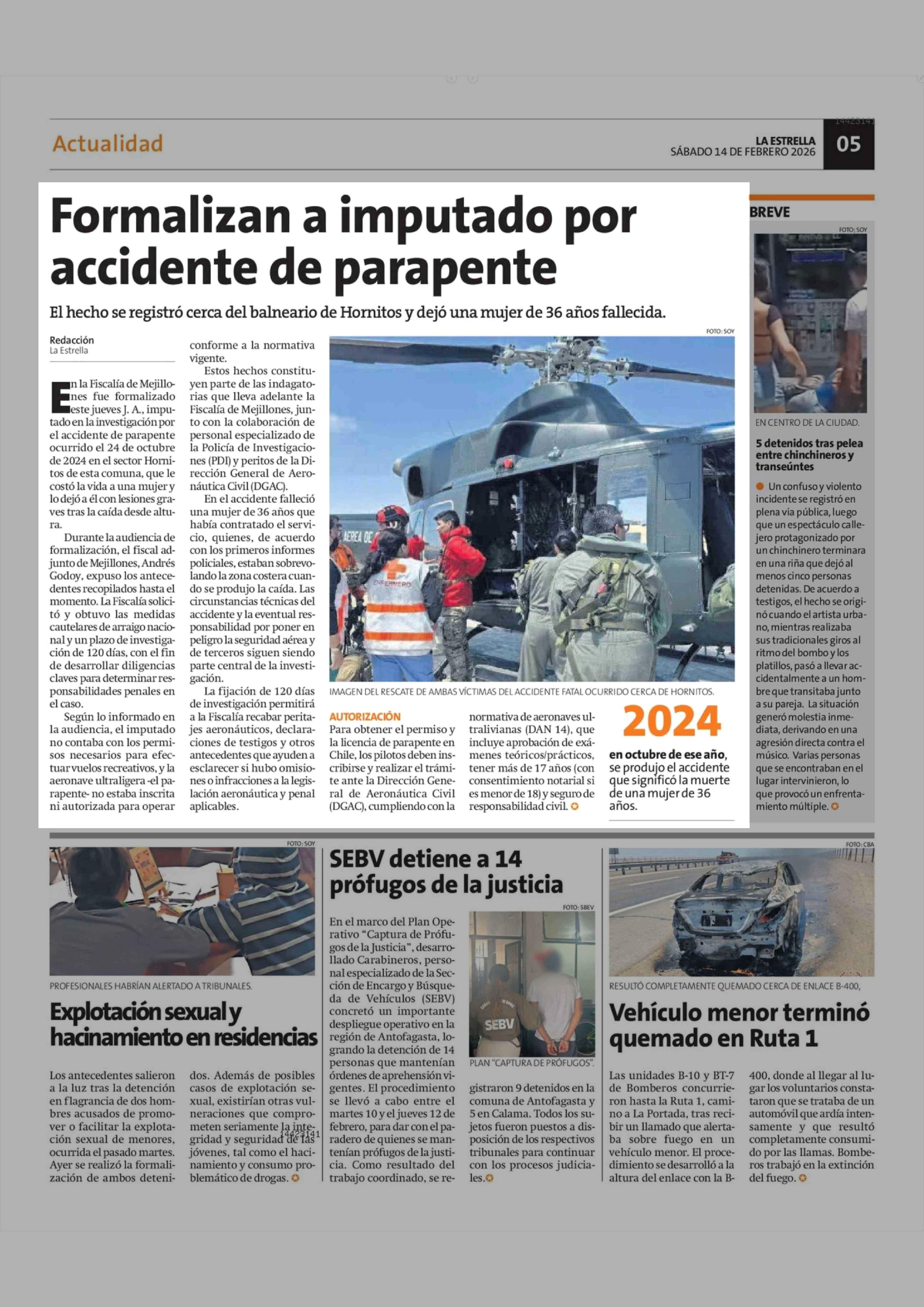 Formalizan a imputado por accidente de parapente 15-02-2026 La Estrella de Antofagasta |
