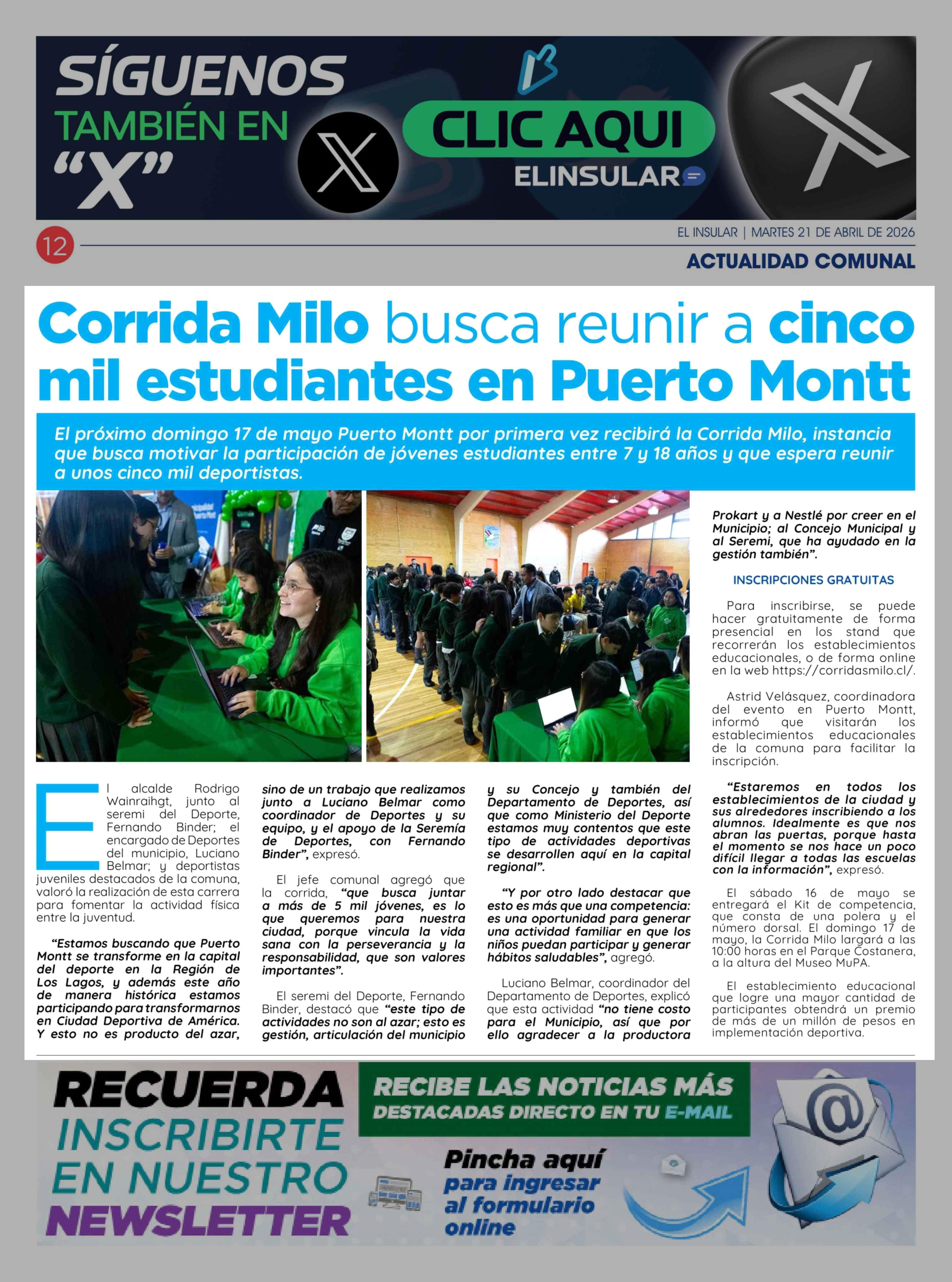 Título: Corrida Milo busca reunir a cinco mil estudiantes en Puerto Montt