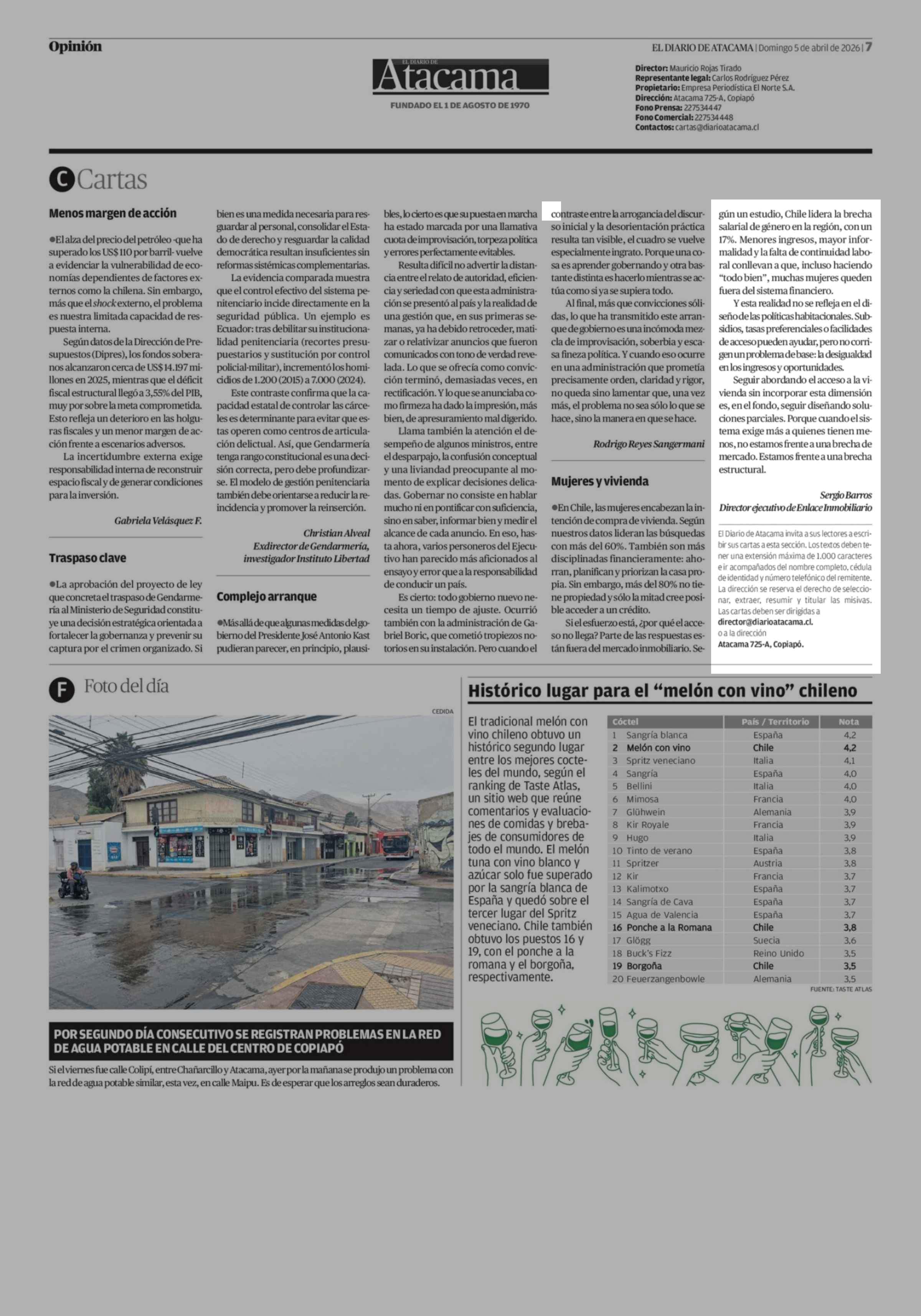 Fecha: 05-04-2026 Sector: Cartas Región: Región de Atacama