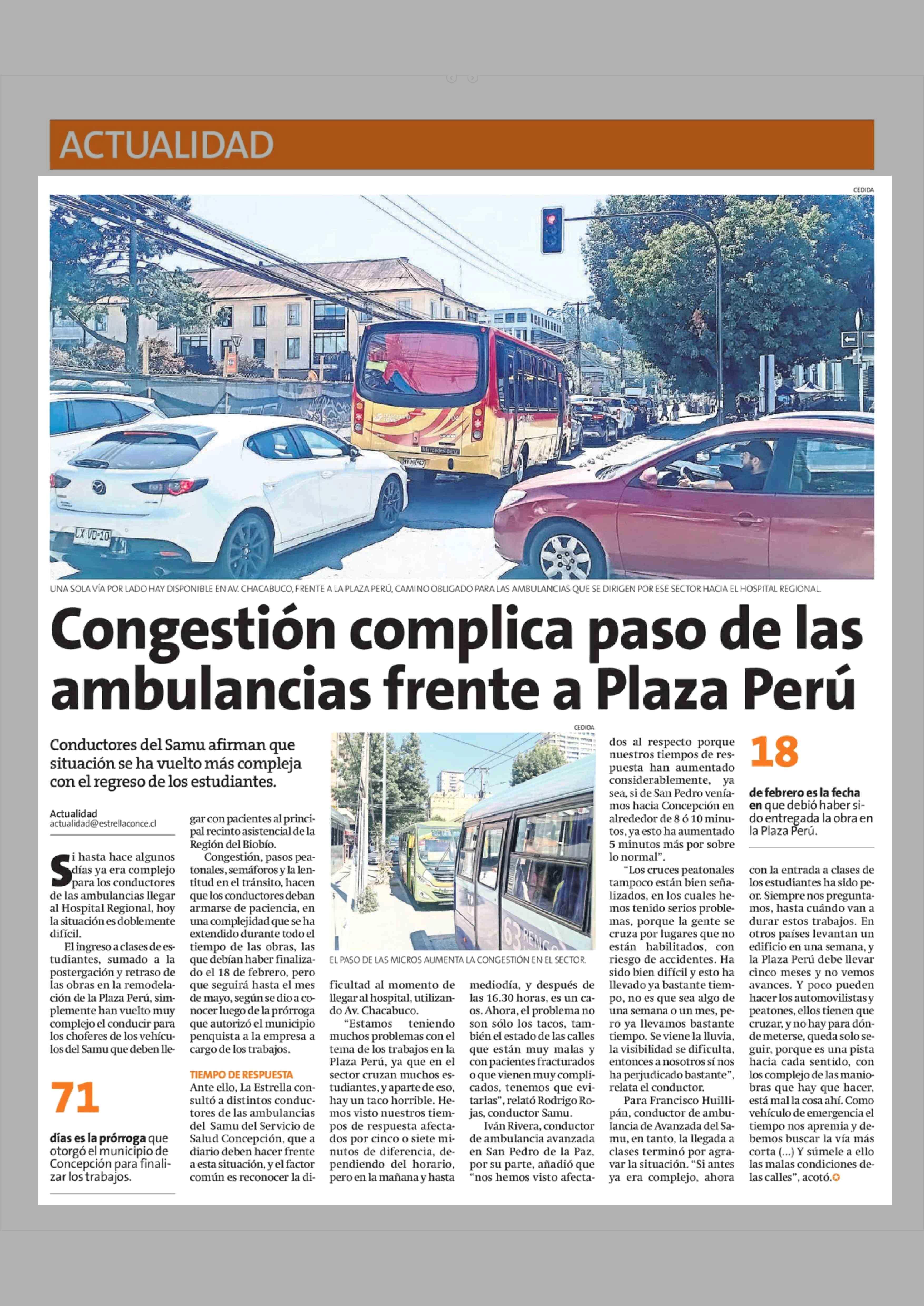 Congestión complica paso de las ambulancias frente a Plaza Perú 10-03-2026 La Estrella de Concepción |
